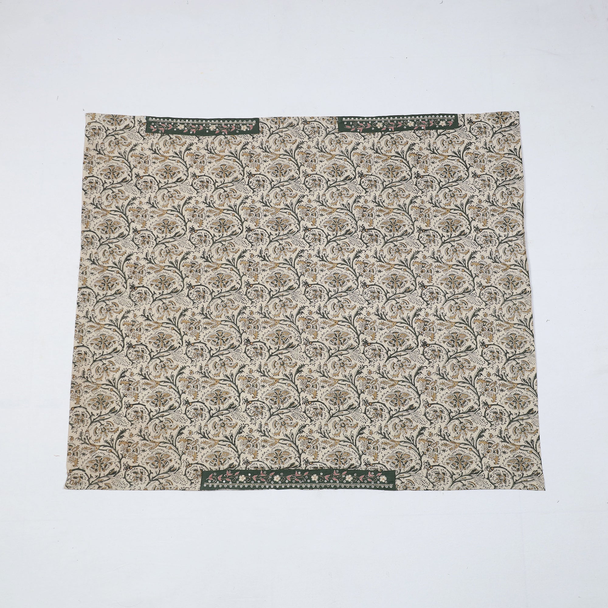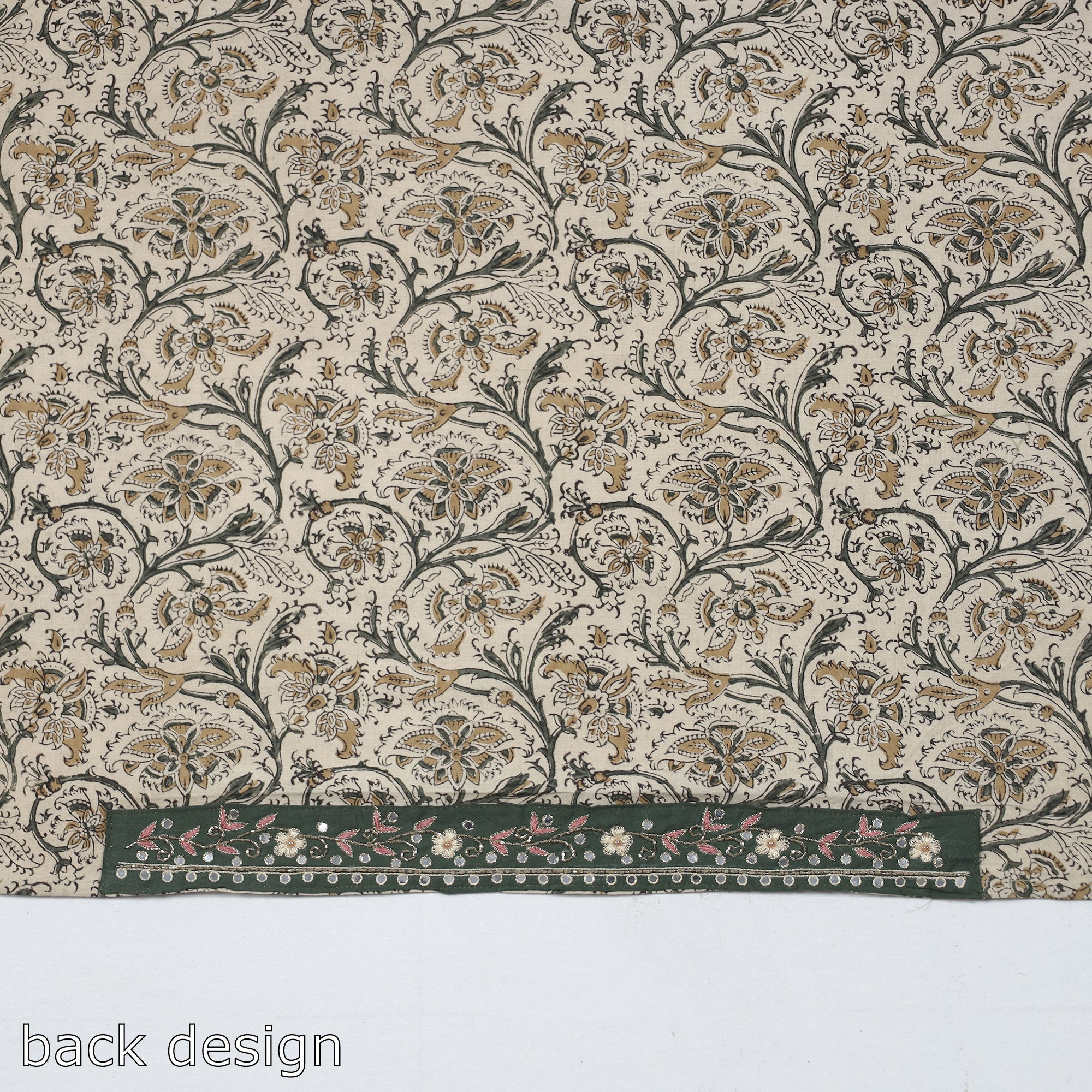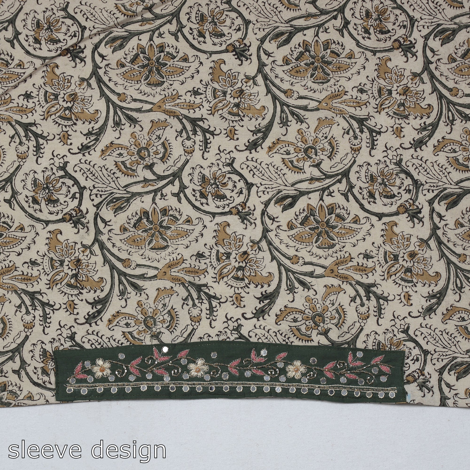 Fine-quality zardozi hand-embroidered kalamkari block-printed cotton blouse material made from cotton fabrics & textured with handmade textiles of India. This embroidered blouse material will go with almost all of your sarees & enhance your look.