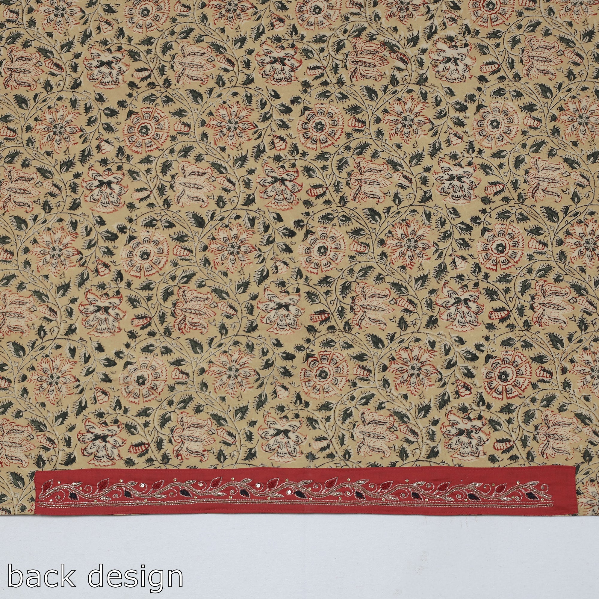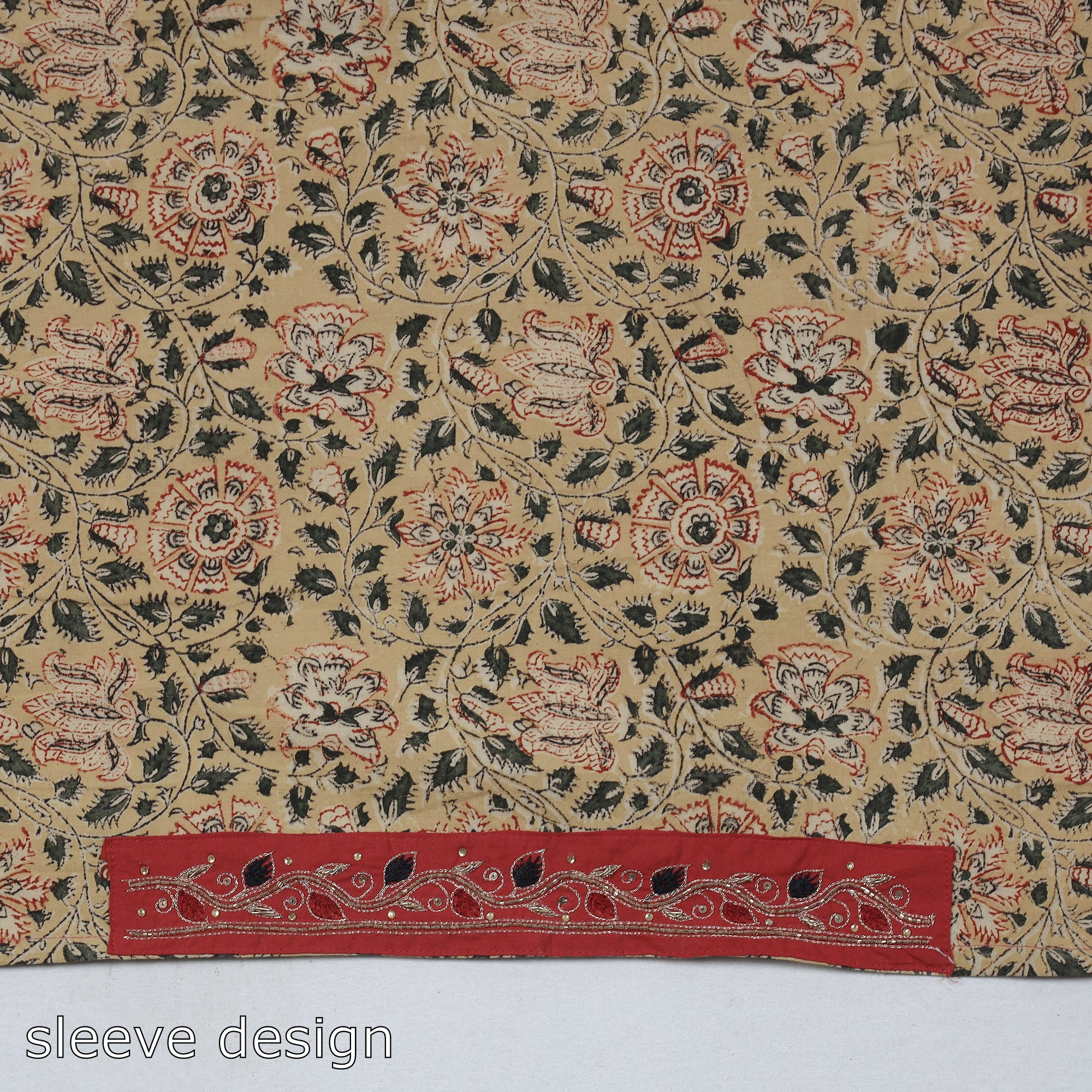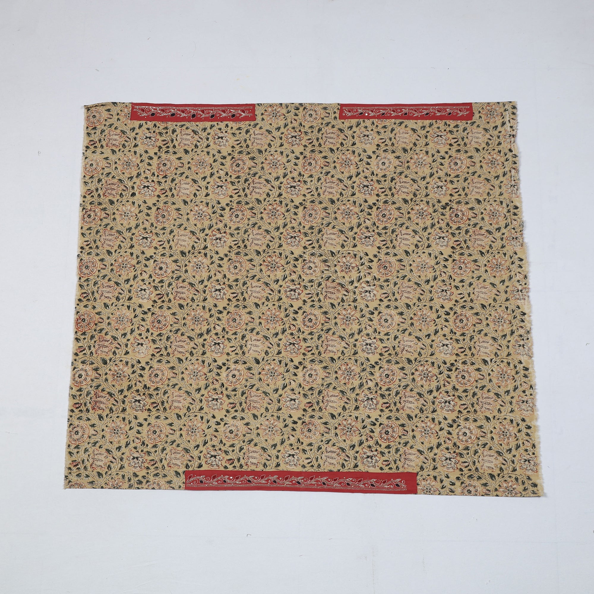 Fine-quality zardozi hand-embroidered kalamkari block-printed cotton blouse material made from cotton fabrics & textured with handmade textiles of India. This embroidered blouse material will go with almost all of your sarees & enhance your look.