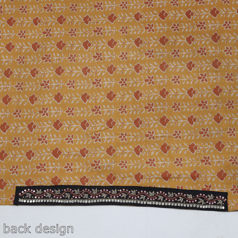 Fine-quality zardozi hand-embroidered kalamkari printed cotton blouse material made from cotton fabrics & textured with handmade textiles of India. This embroidered blouse material will go with almost all of your sarees & enhance your look.