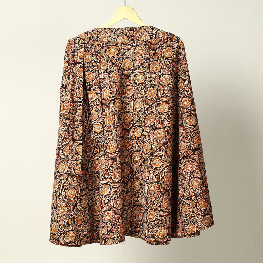 This intricate orange kalamkari block-printed cotton wrap-around skirt seamlessly blends tradition with contemporary fashion. The waist tie-up closure ensures a customized fit, while the intricate Kalamkari craft adds a touch of artistry. Perfect for casual outings or special occasions, this skirt exudes elegance and comfort. Embrace the charm of craftsmanship and make a statement with this versatile and timeless wrap-around skirt.