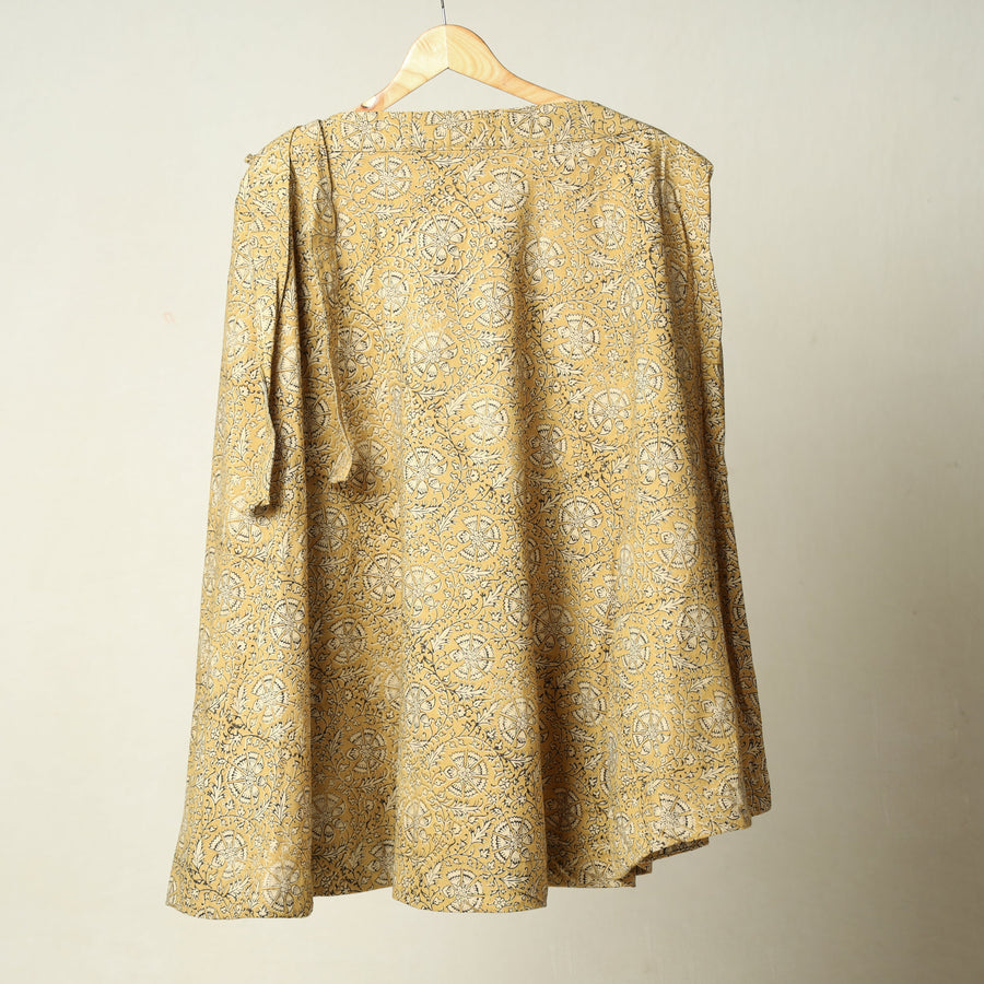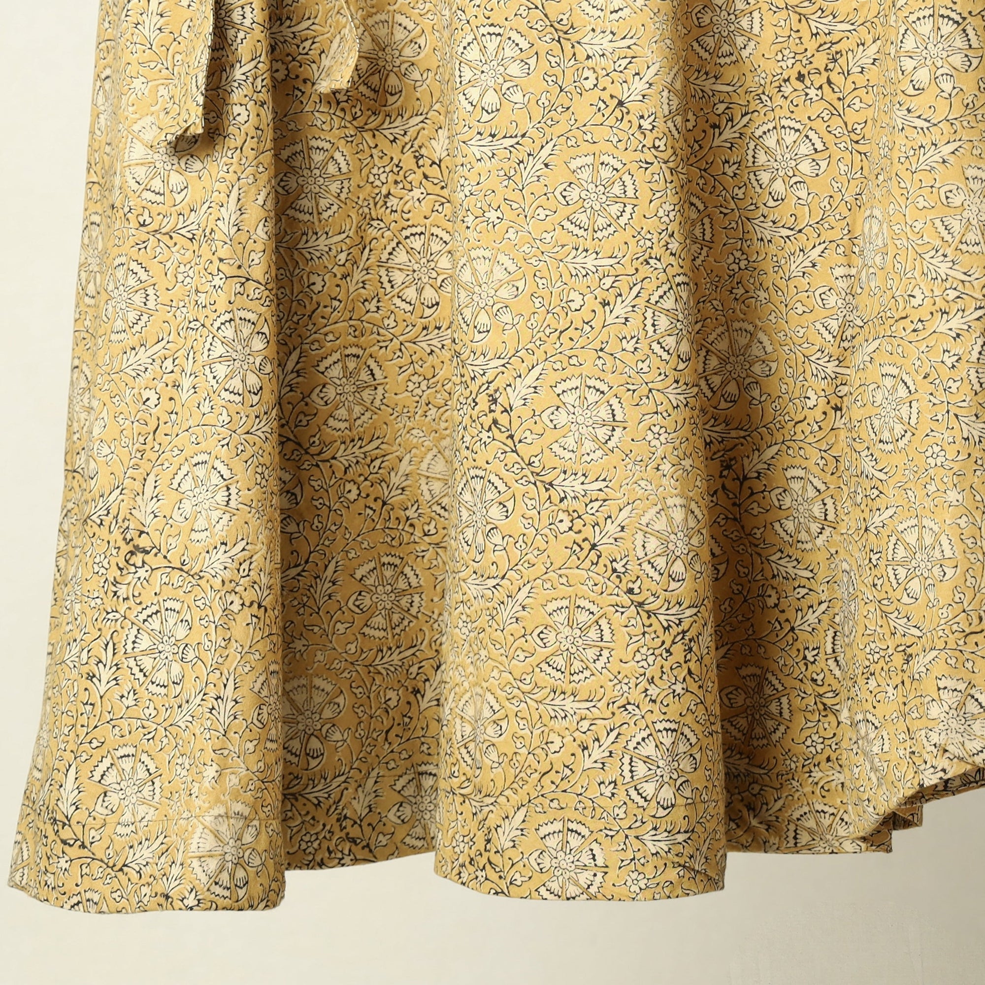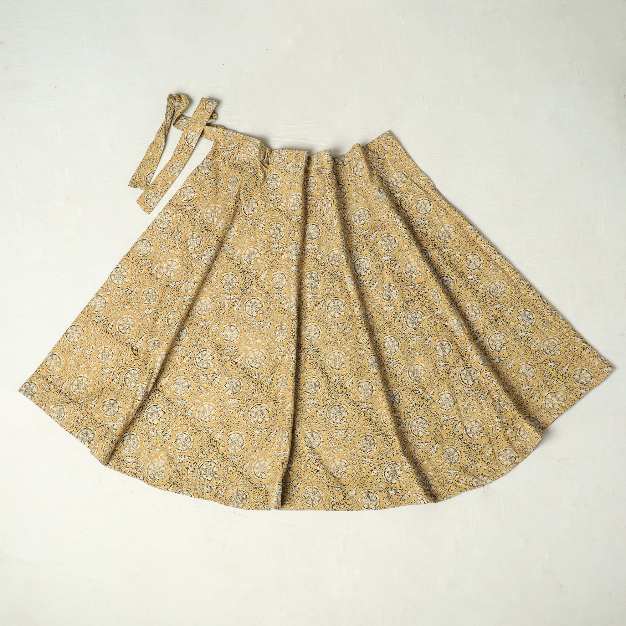 Yellow - Kalamkari Block Printed Cotton Wrap Around Skirt