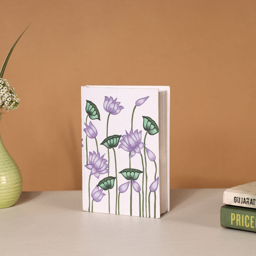 | Material | Enhance your note-taking experience with the kamal talai in lotus handpainted handmade paper notebook by Kalyan Joshi. Handpainted with vibrant poster and natural colours. The eco-friendly blend of recycled cotton, paper, and natural fibers ensures guilt-free writing, free from harmful chemicals. Ideal for journaling, sketching, or gifting, this unique notebook combines artistic flair with sustainable craftsmanship. |