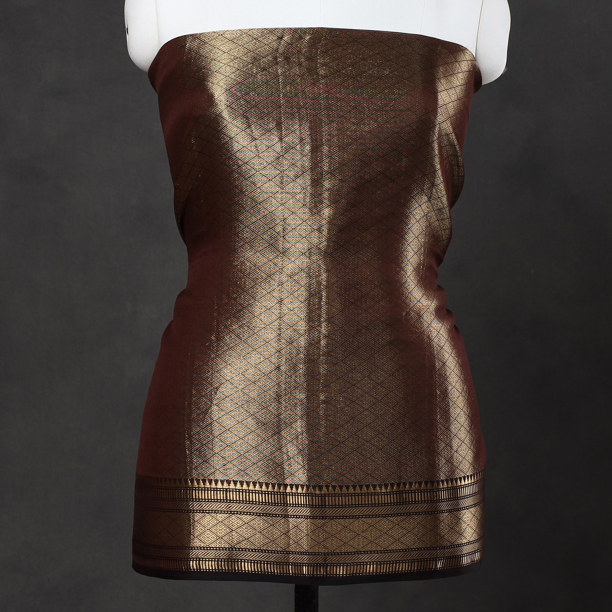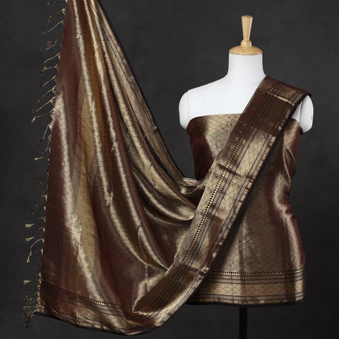 Experience timeless elegance with our traditional maheshwari tissue zari weave handloom mercerized cotton 2-piece suit material set. This elegant suit is skillfully handwoven by the master artisans of Maheshwar, a heritage town in India, using traditional techniques. The suit boasts a luxurious feel and intricate zari work, adding a touch of sophistication to your wardrobe. Unleash your creativity with this versatile 2-piece suit material set. Express your unique fashion sense by customizing the outfit to suit various occasions, from casual gatherings to festive celebrations.