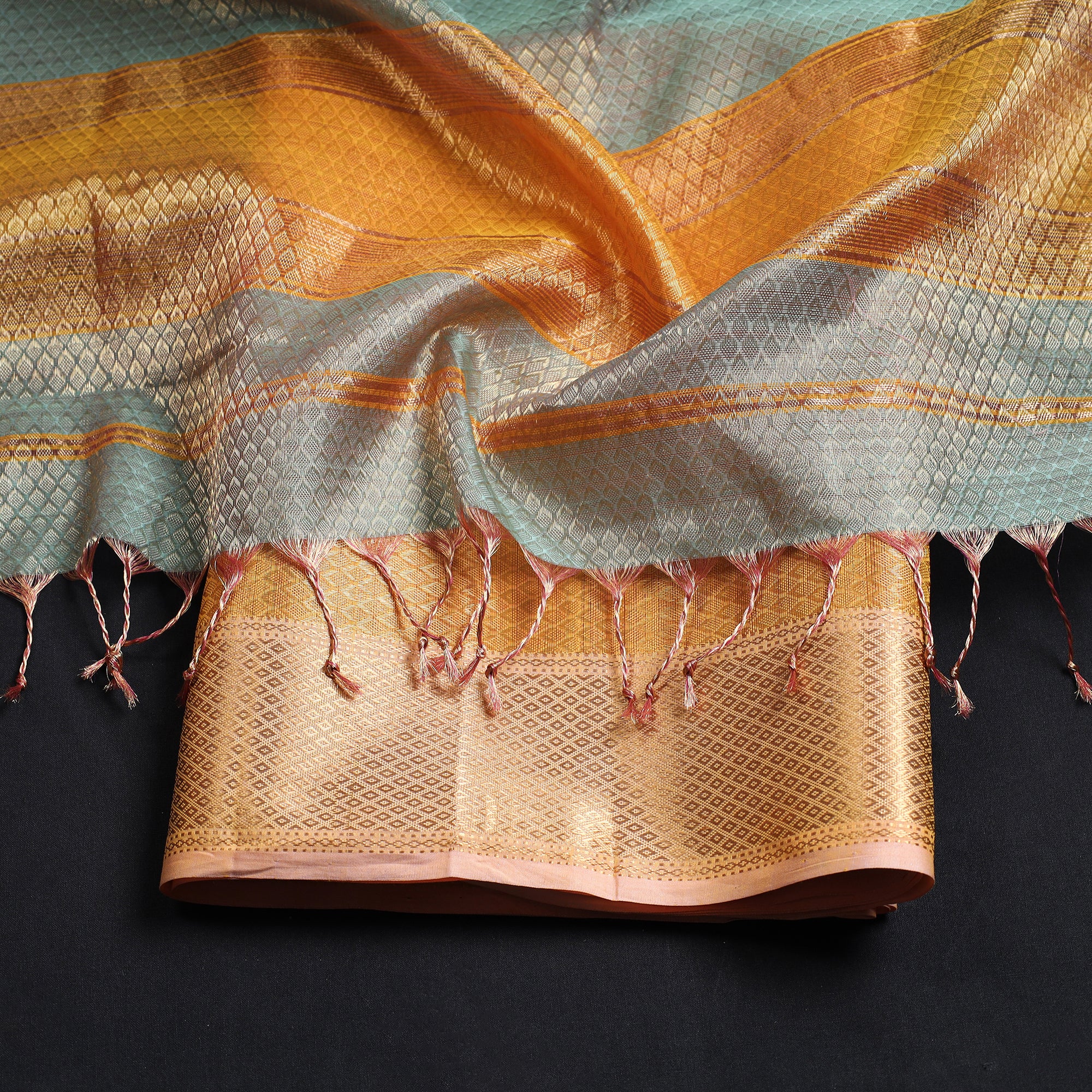 • Yellow - 2pc heavy tissue zari handloom cotton maheshwari
