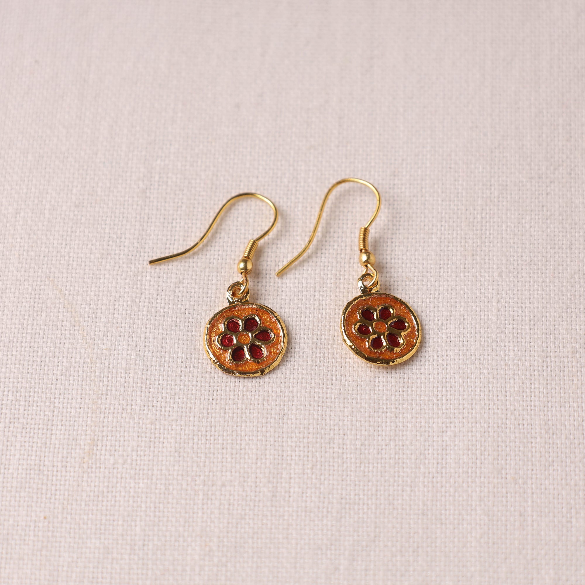 Indulge in the beauty of Sukhomoy Mukherjee's orange paka meenakari earrings and let them become a reflection of your personal style. Whether you're looking to make a bold statement or add a subtle touch of elegance, these hand-crafted treasures are the perfect choice.