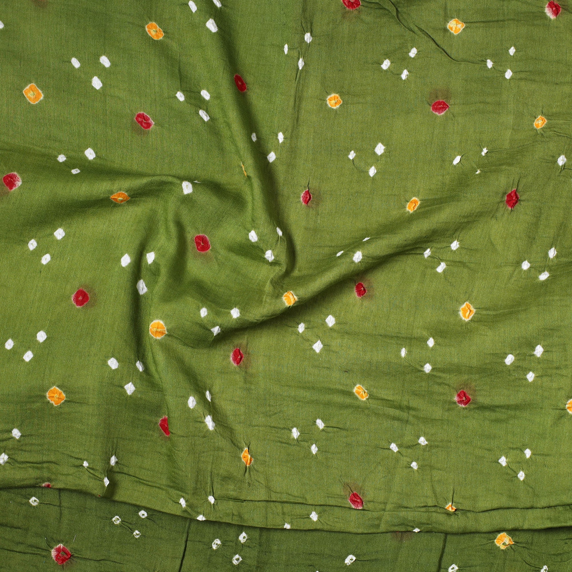 Fine-quality kutch bandhani tie-dye satin cotton precut fabric featuring a majestic bandhani pattern, tie-dyed using the traditional technique practiced by the artisans of Kutch. The art of Bandhani is a highly skilled process. Perfect for crafting elegant blouses, bags, decorative items, etc., this exquisite textile symbolizes timeless sophistication, adding a touch of elegance to any wardrobe.