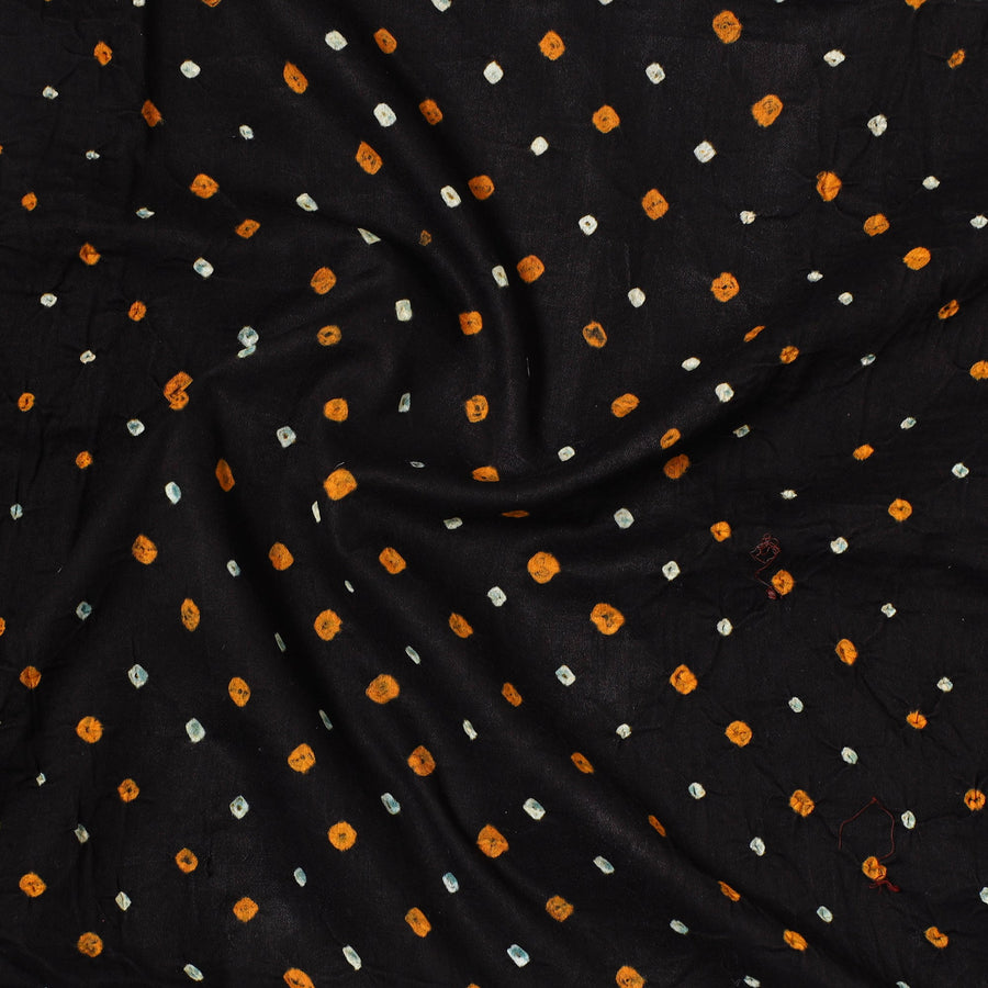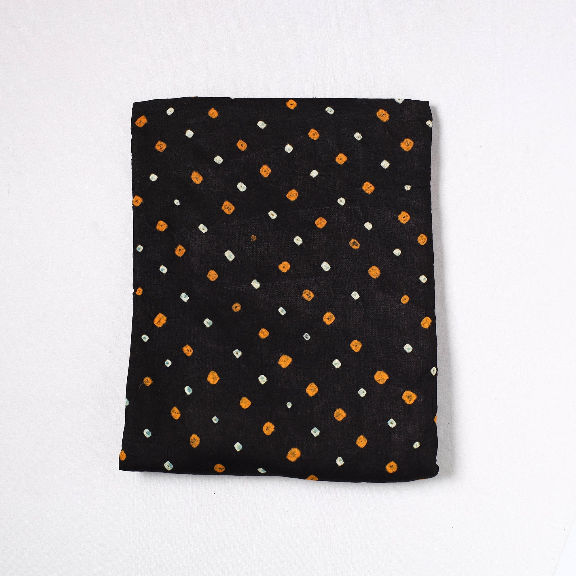 Fine-quality kutch bandhani tie-dye satin cotton precut fabric featuring a majestic bandhani pattern, tie-dyed using the traditional technique practiced by the artisans of Kutch. The art of Bandhani is a highly skilled process. Perfect for crafting elegant blouses, bags, decorative items, etc., this exquisite textile symbolizes timeless sophistication, adding a touch of elegance to any wardrobe.