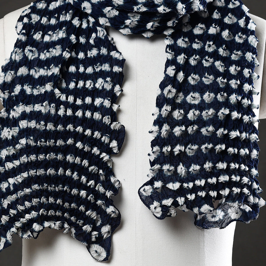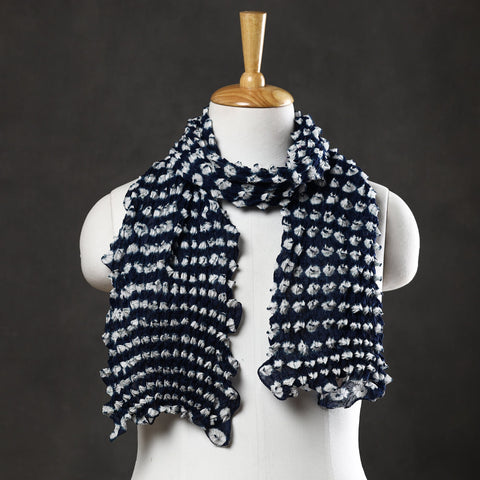 This kutch bandhani tie-dye cotton stole showcases a majestic bandhani pattern, created using the traditional tie-dye technique practiced by skilled artisans in Kutch. Each piece is meticulously dyed by tying the fabric tightly with thread at multiple points, resulting in a beautifully intricate design.