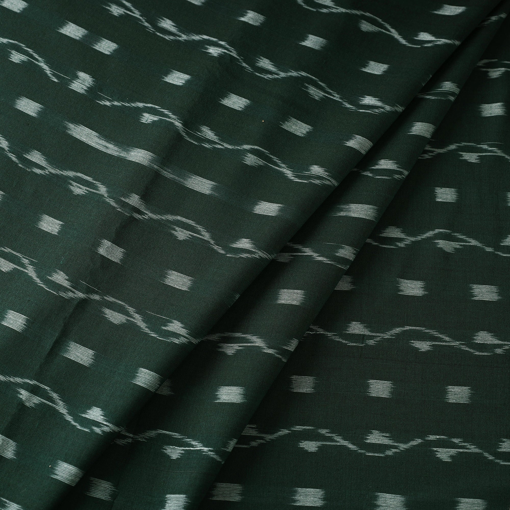 Fine-quality sambalpuri ikat weaving cotton fabric from Odisha with traditional motifs like shankha (shell), chakra (wheel), and phula (flower) by master artisans from the eastern states of India. Ikat (Ikkat) is a dyeing technique used to pattern textiles that employs a resist dyeing process similar to tie-dye on either the warp or weft fibers prior to dyeing. Ikat has lovely patterns and is world-famous for its extremely beautiful colors, textures, and designs. Indian Ikat is always admired by fashion designers around the world.