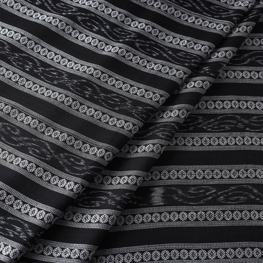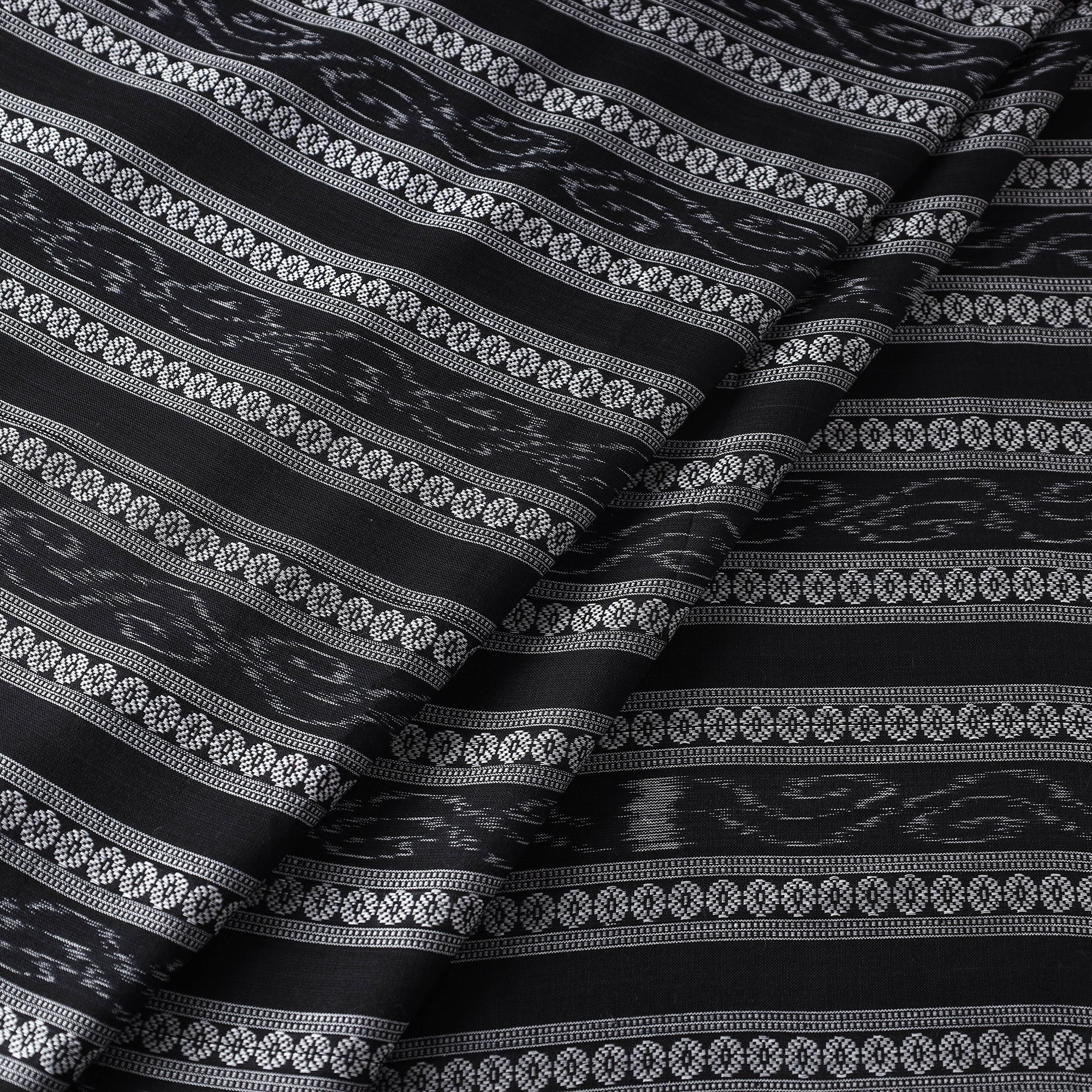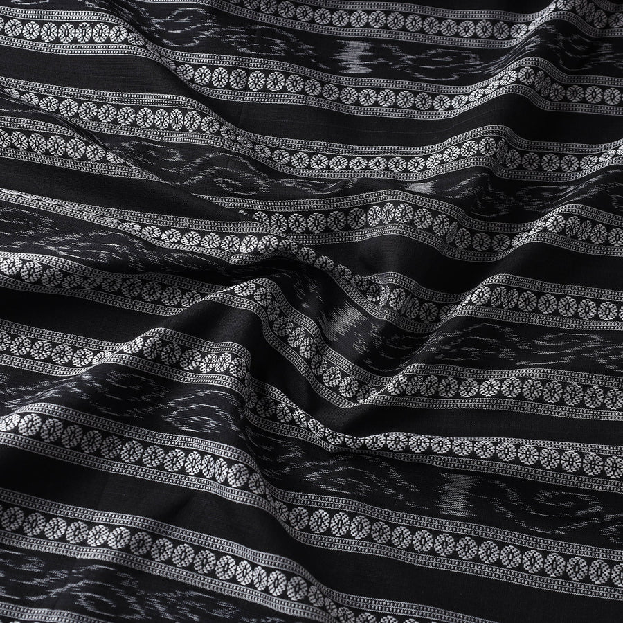 Fine-quality sambalpuri ikat weaving cotton fabric from Odisha with traditional motifs like shankha (shell), chakra (wheel), and phula (flower) by master artisans from the eastern states of India. Ikat (Ikkat) is a dyeing technique used to pattern textiles that employs a resist dyeing process similar to tie-dye on either the warp or weft fibers prior to dyeing. Ikat has lovely patterns and is world-famous for its extremely beautiful colors, textures, and designs. Indian Ikat is always admired by fashion designers around the world.
