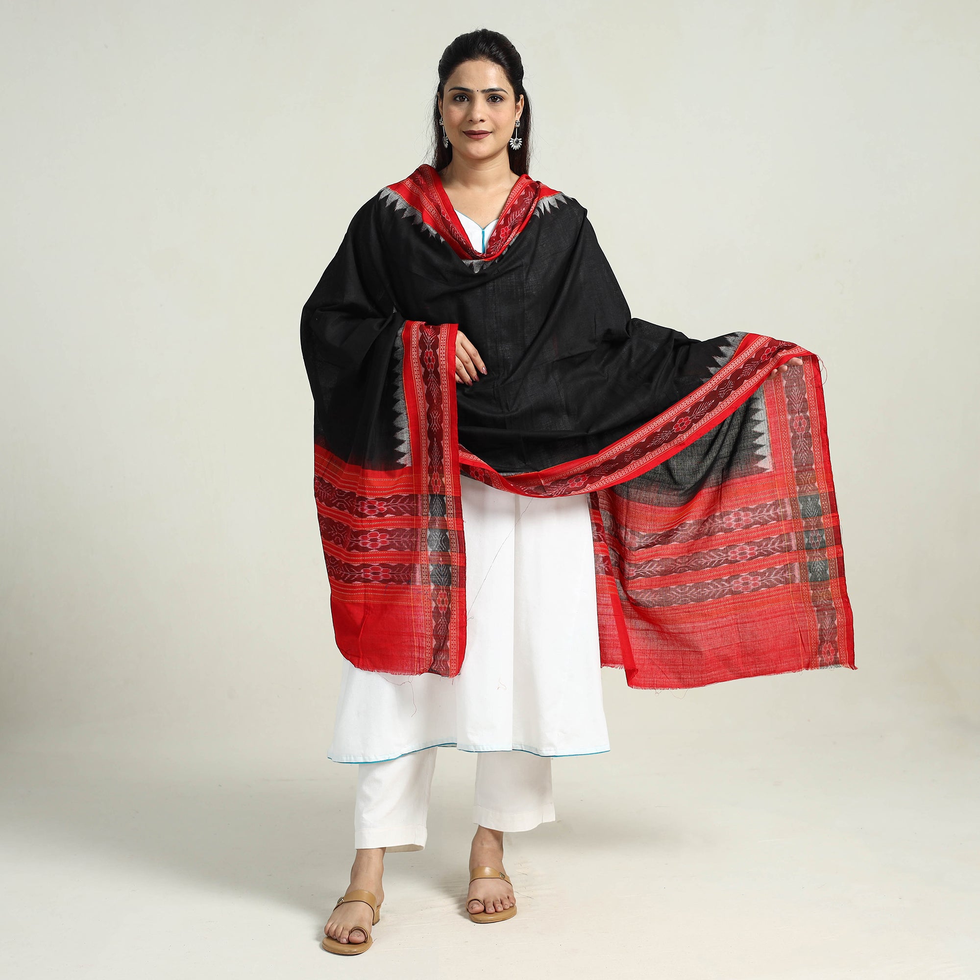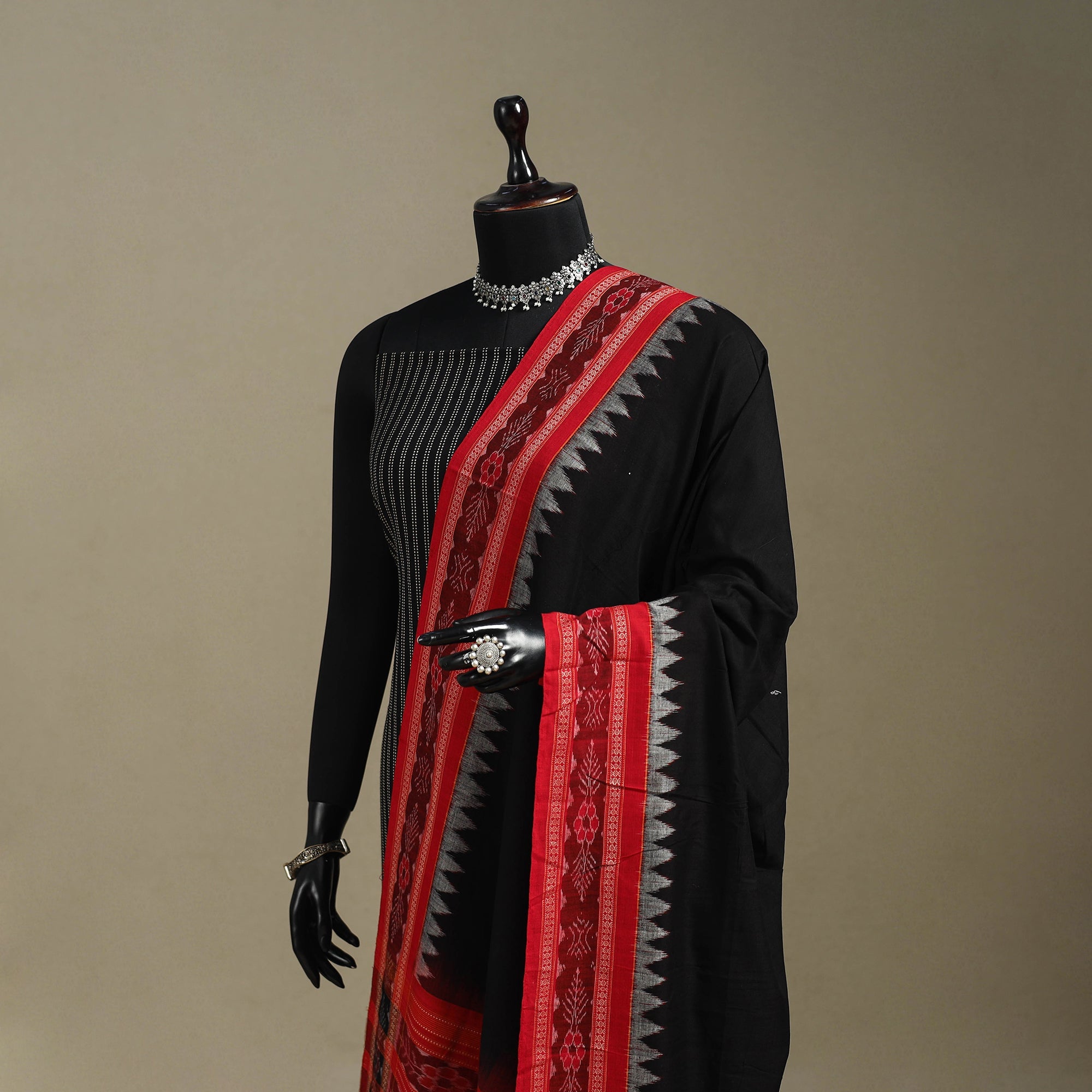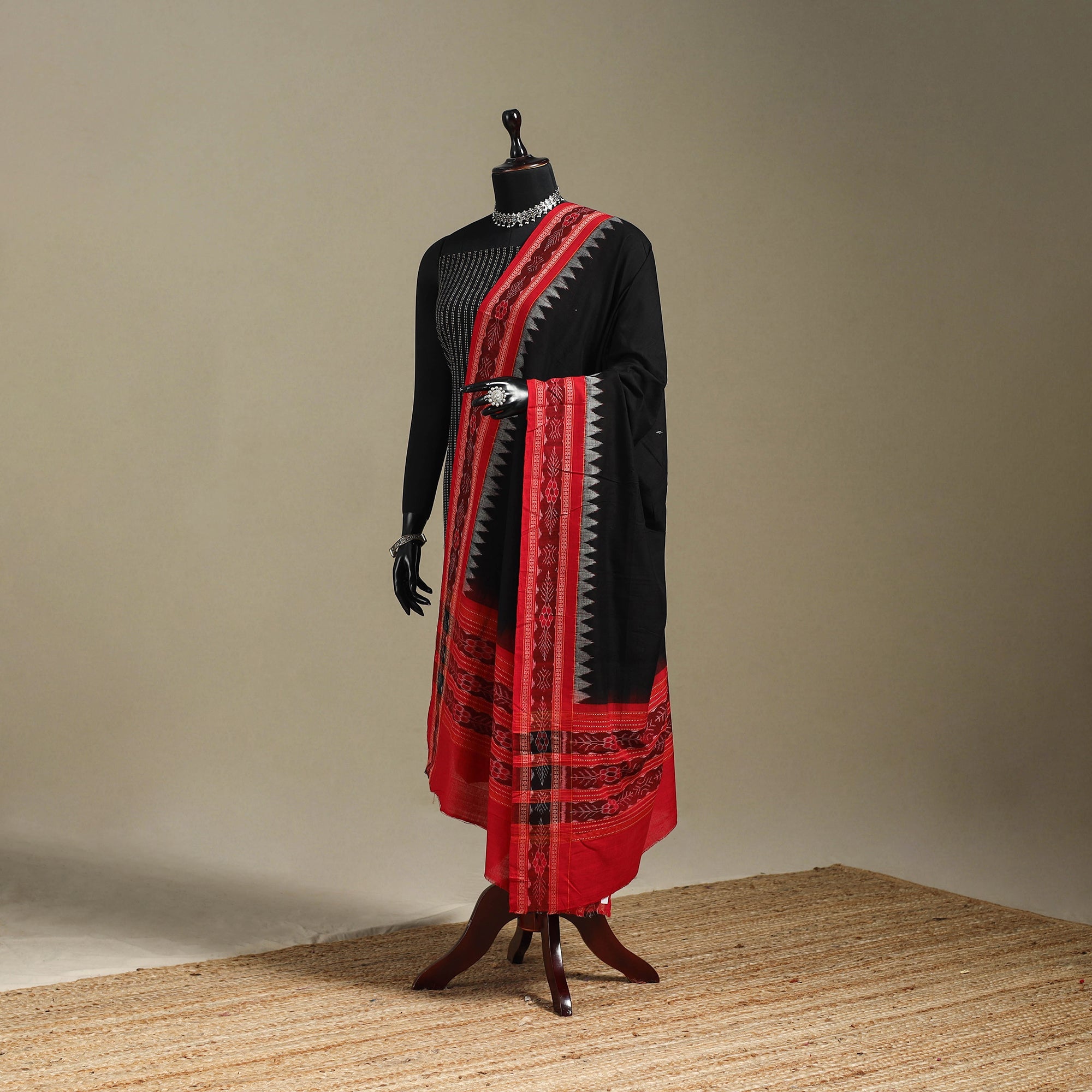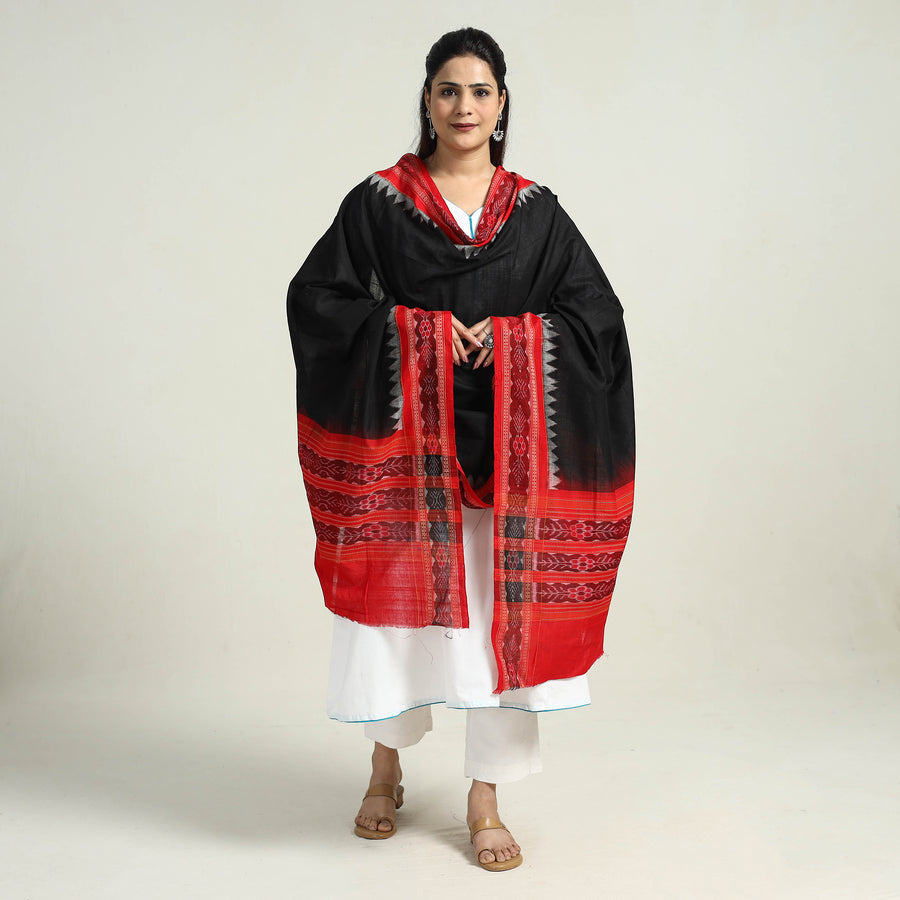 Black sambalpuri ikat weave handloom plain cotton dupatta from Odisha. Handcrafted by master artisans, this dupatta showcases the artistry of eastern India. Ikat, a dyeing technique known for its stunning patterns and vibrant colors, adds a touch of elegance to this piece. Embrace the beauty of Indian ikat, cherished by fashion designers worldwide.