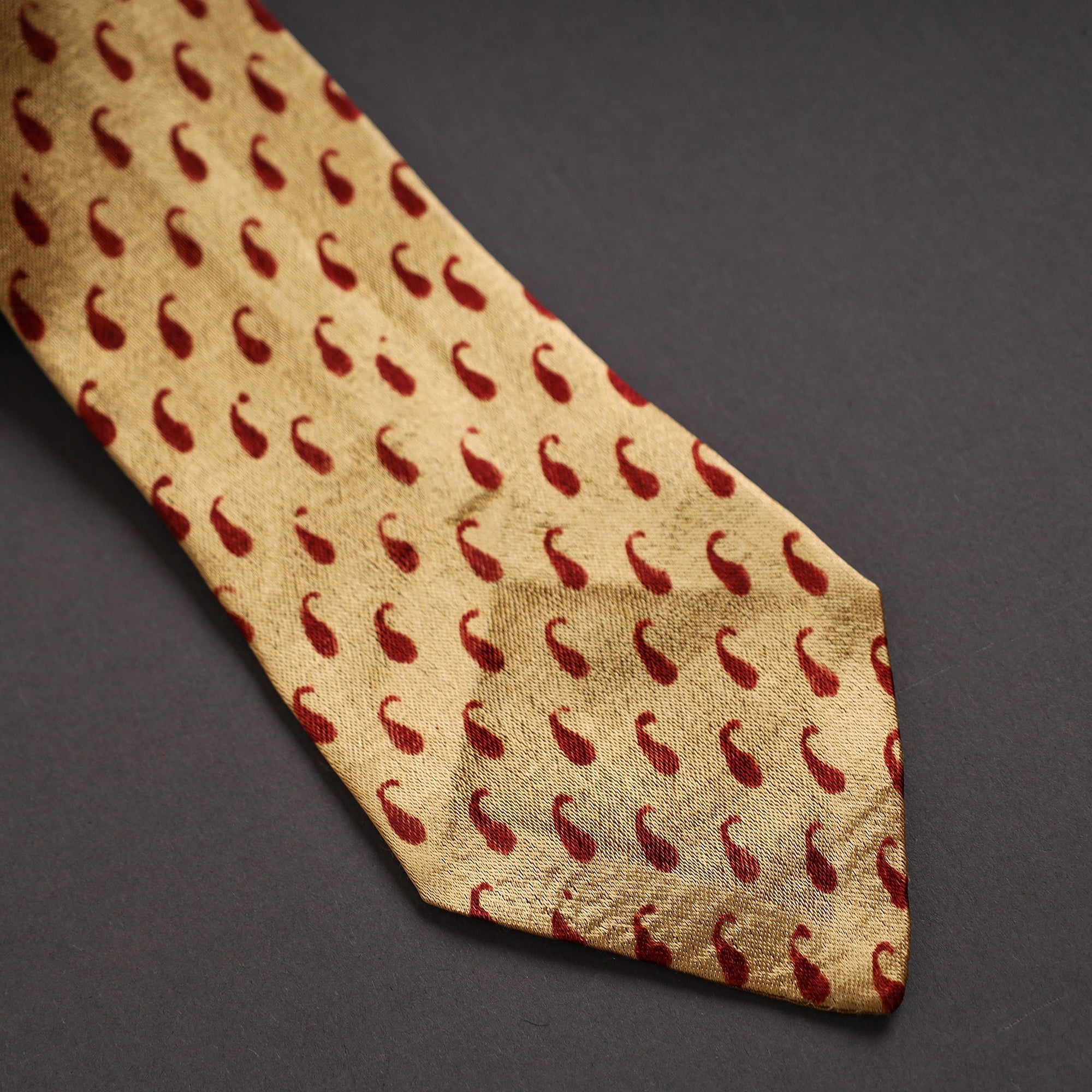 Enhance your attire with our block-printed mashru silk handmade necktie. Crafted with precision, this exquisite accessory seamlessly blends traditional artistry with modern style. The rich texture of mashru silk adds a touch of sophistication, making it perfect for formal occasions, business meetings, or any event.