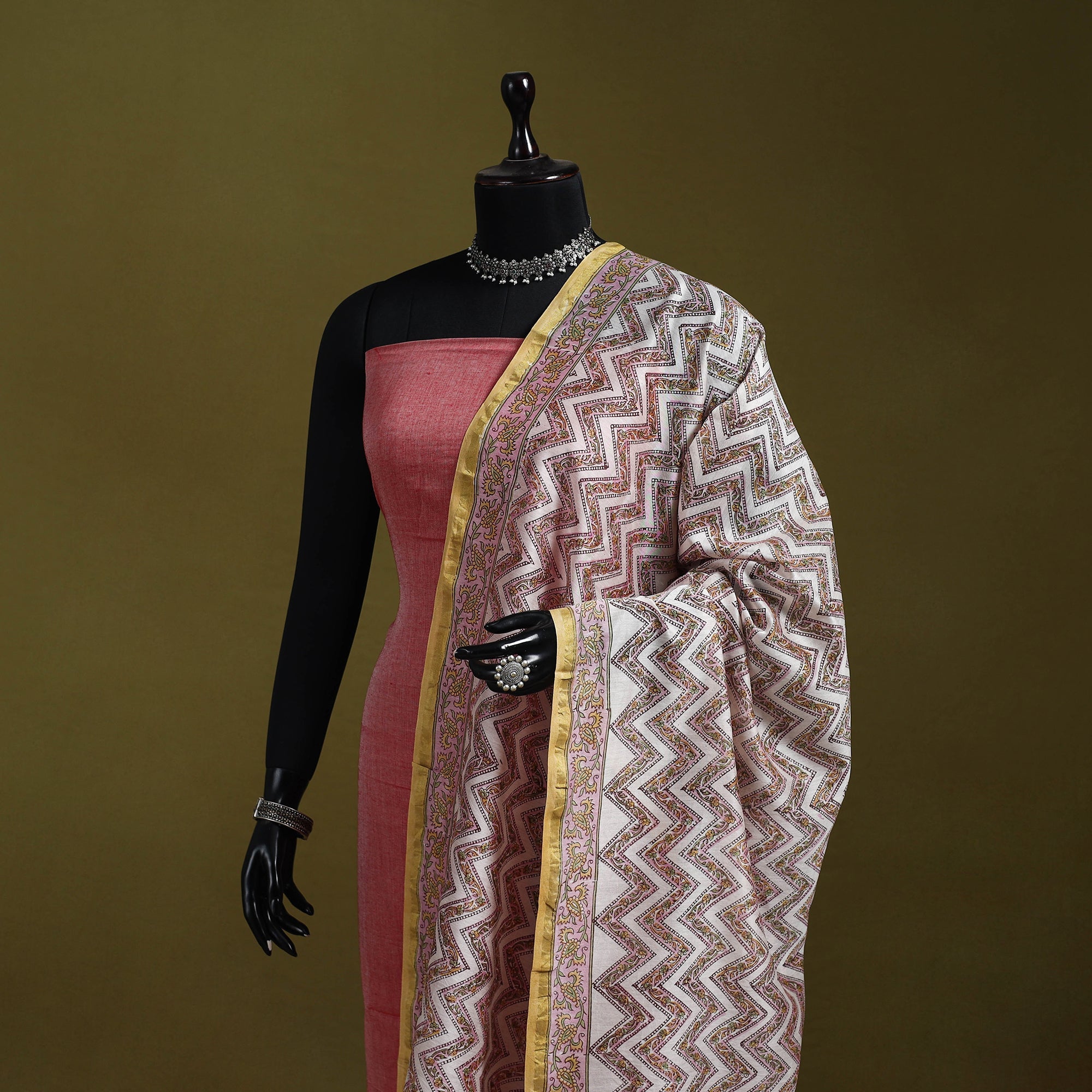 Experience the rich heritage of Rajasthan with our sanganeri hand block printed handloom chanderi silk dupatta with zari border. This dupatta is meticulously crafted from luxurious Chanderi silk-cotton, known for its gossamer looks and amazing feel. The bleed-free VAT dyes ensure lasting vibrancy. The elaborate detailing of the flowers and petals showcases the artistry of this hand-block printing technique originating from Sanganer, Rajasthan. Embrace timeless elegance and support artisanal craftsmanship with this unique accessory.