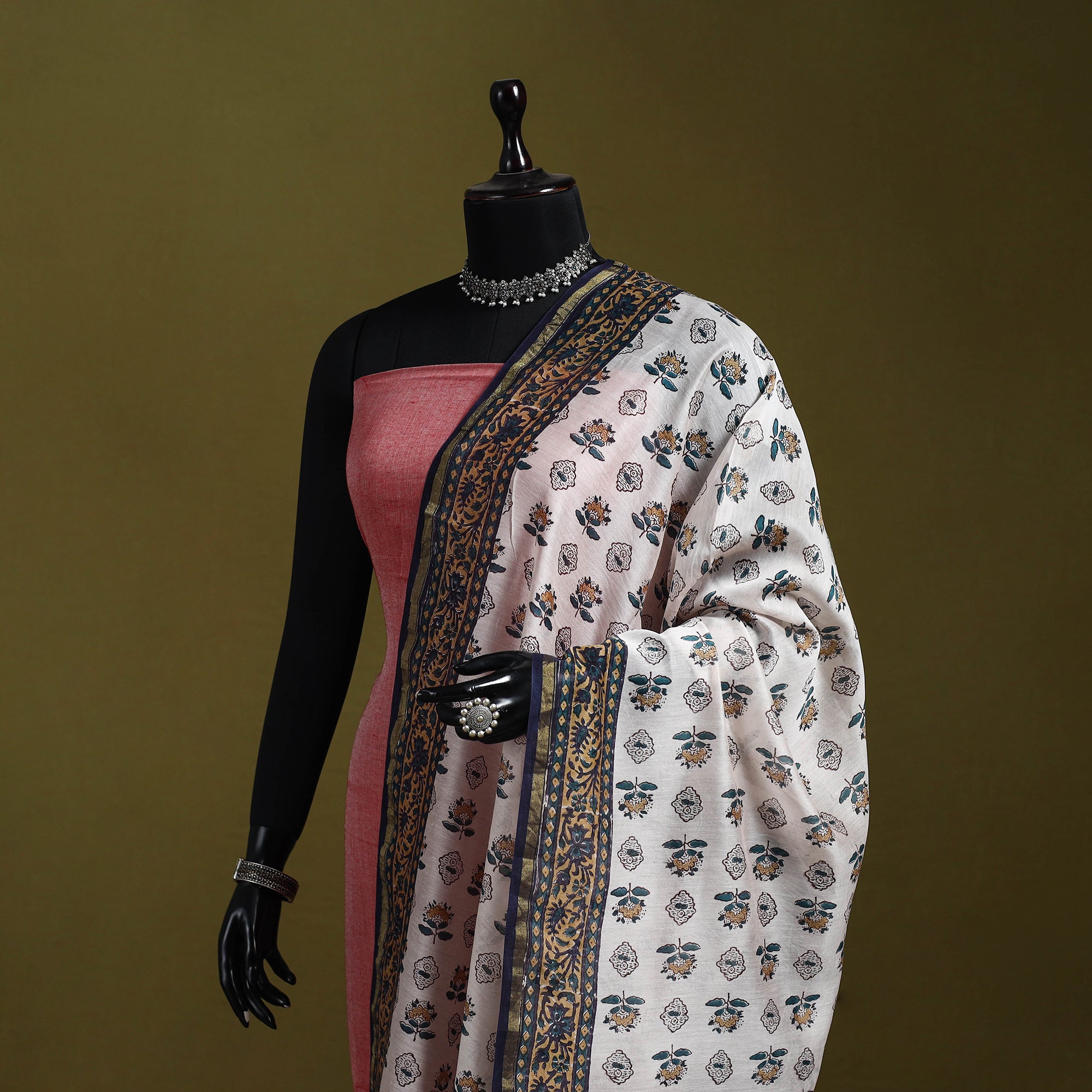 Multicolor - Chanderi Silk Block Print Sanganeri Suit Set with Dupatta for women 09