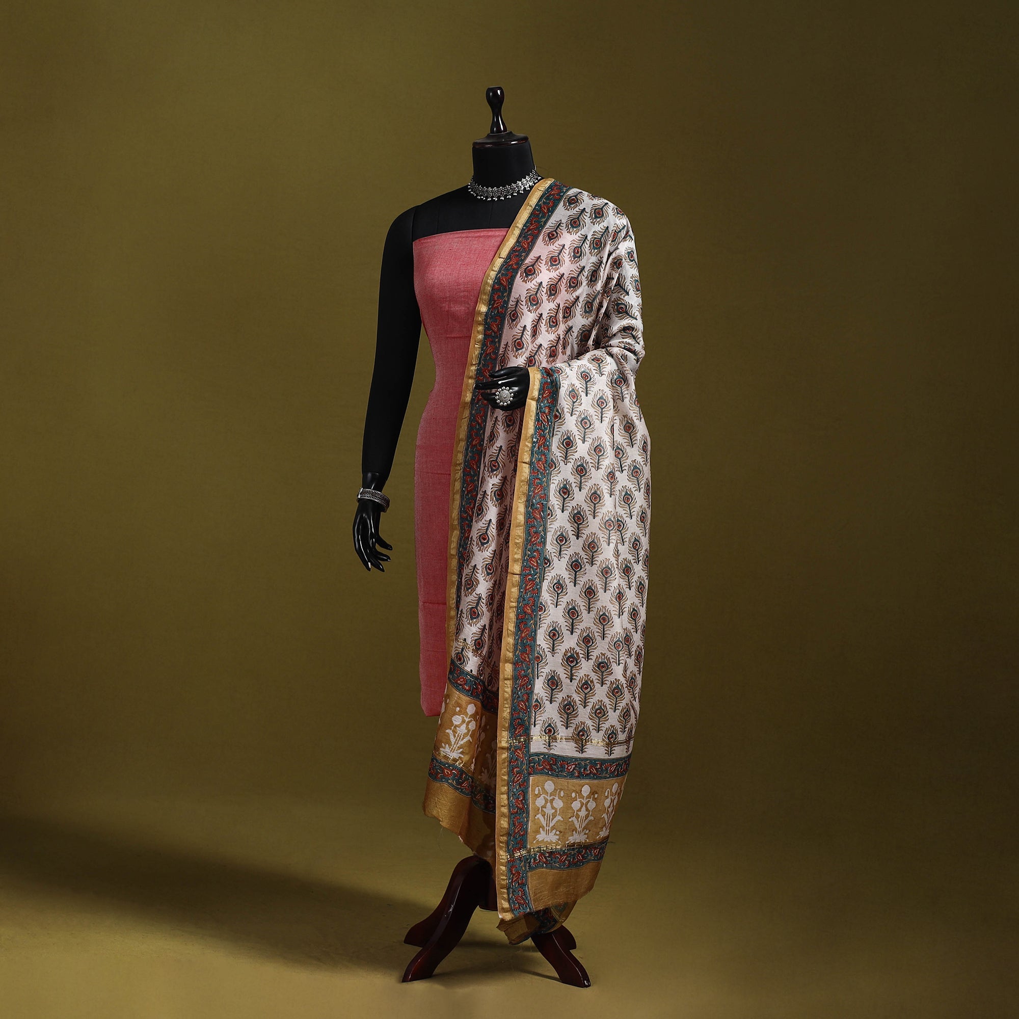 Multicolor - Chanderi Silk Block Print Sanganeri Suit Set with Dupatta for women 09