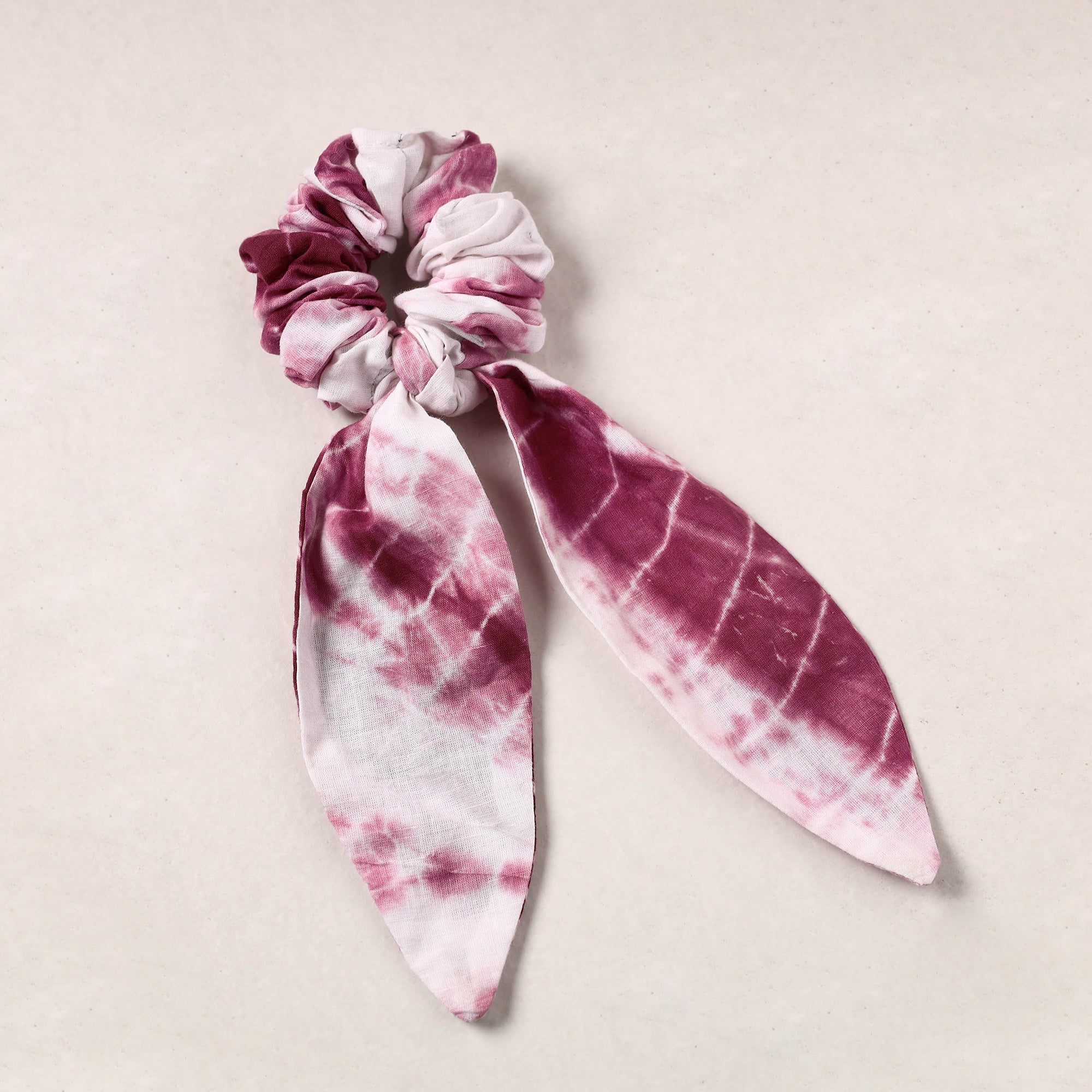 This hair scrunchie tie is made of shibori tie-dye cotton fabric, has good texture, is soft, and each scrunchie comes with a durable rubber hair band. This scrunchie gives your outfits a smart twist by tying them around basic ponytails, adding them to the ends of braids, or topping off your top knots with them.