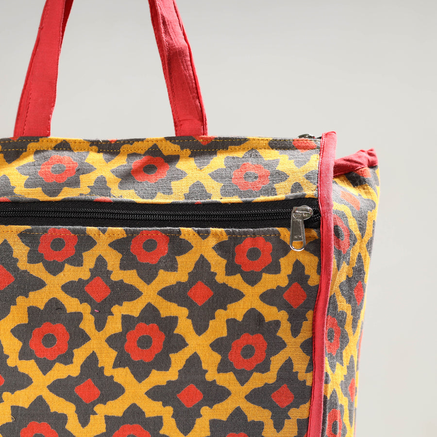Enhance your shopping routine with our multicolor handmade, jaipur-printed cotton shopping bag. Crafted from premium cotton, it seamlessly blends durability and style. The spacious design accommodates daily essentials, making it a versatile accessory. Textured with handmade textiles from India, this bag serves practical purposes and also showcases artisanal craftsmanship.