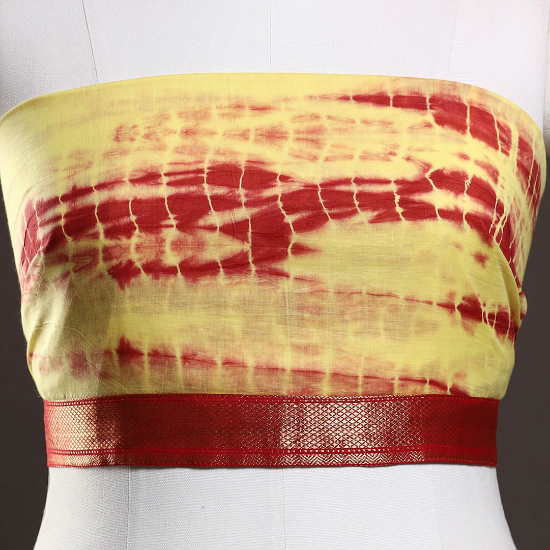 Fine quality shibori tie-dye blouse material, expertly crafted from of high-quality cotton material and adorned with traditional handmade textiles of India. This versatile mix and match blouse material is perfect to pair with any saree, adding a touch of elegance to your ensemble. Made with the finest quality materials, this blouse material ensures comfort and style, making it a must-have addition to your wardrobe.