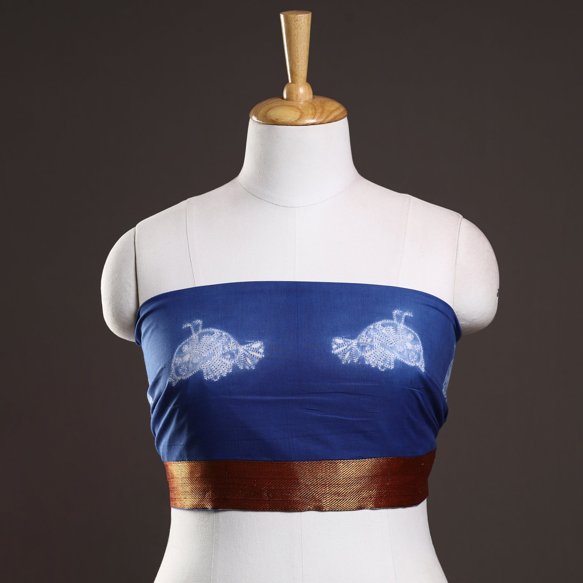 Fine quality shibori tie-dye blouse material, expertly crafted from of high-quality cotton material and adorned with traditional handmade textiles of India. This versatile mix and match blouse material is perfect to pair with any saree, adding a touch of elegance to your ensemble. Made with the finest quality materials, this blouse material ensures comfort and style, making it a must-have addition to your wardrobe.