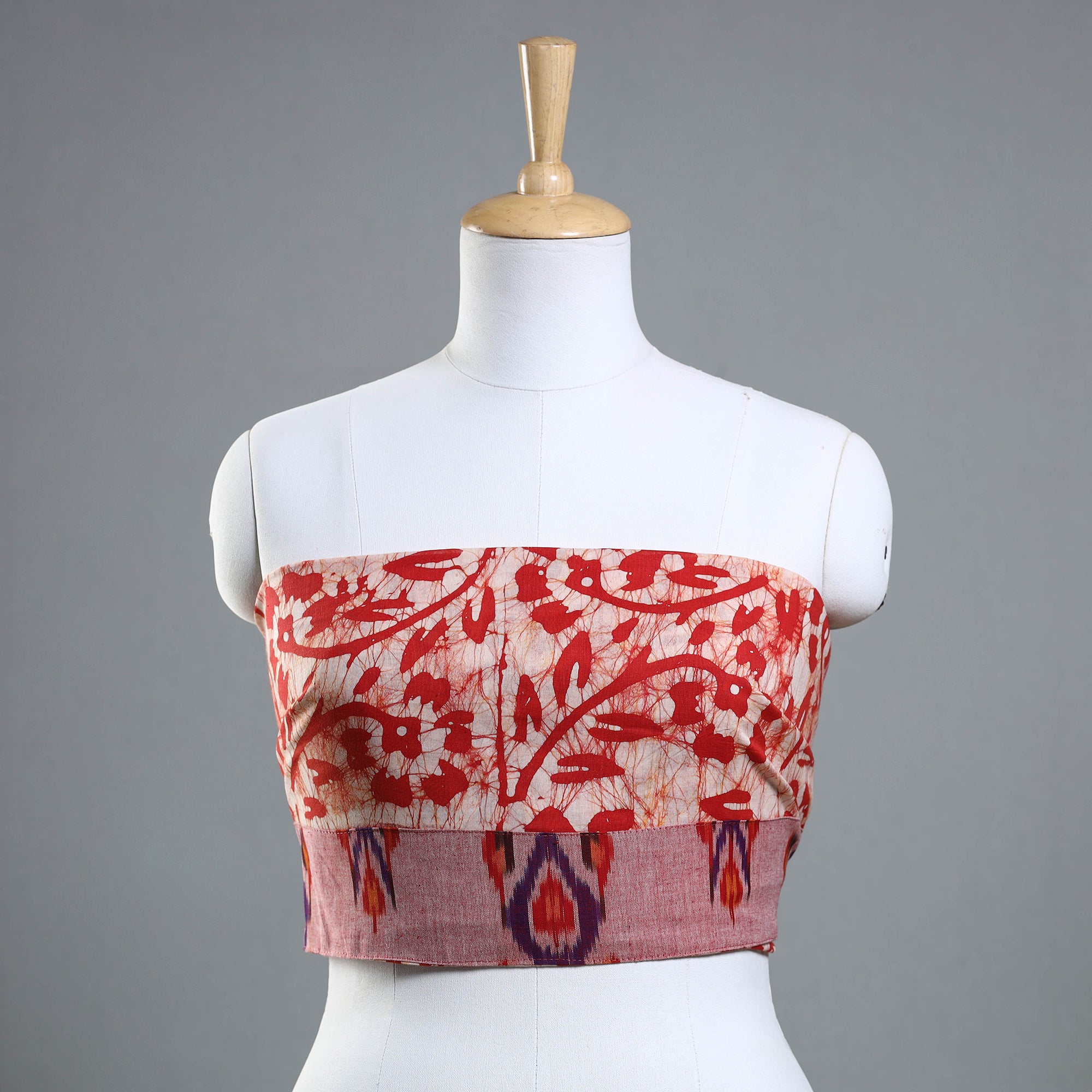 Fine quality red hand batik printed cotton blouse piece, expertly crafted from of high-quality cotton material and adorned with traditional handmade textiles of India. This versatile mix and match blouse material is perfect to pair with any saree, adding a touch of elegance to your ensemble. Made with the finest quality materials, this blouse piece ensures comfort and style, making it a must-have addition to your wardrobe.