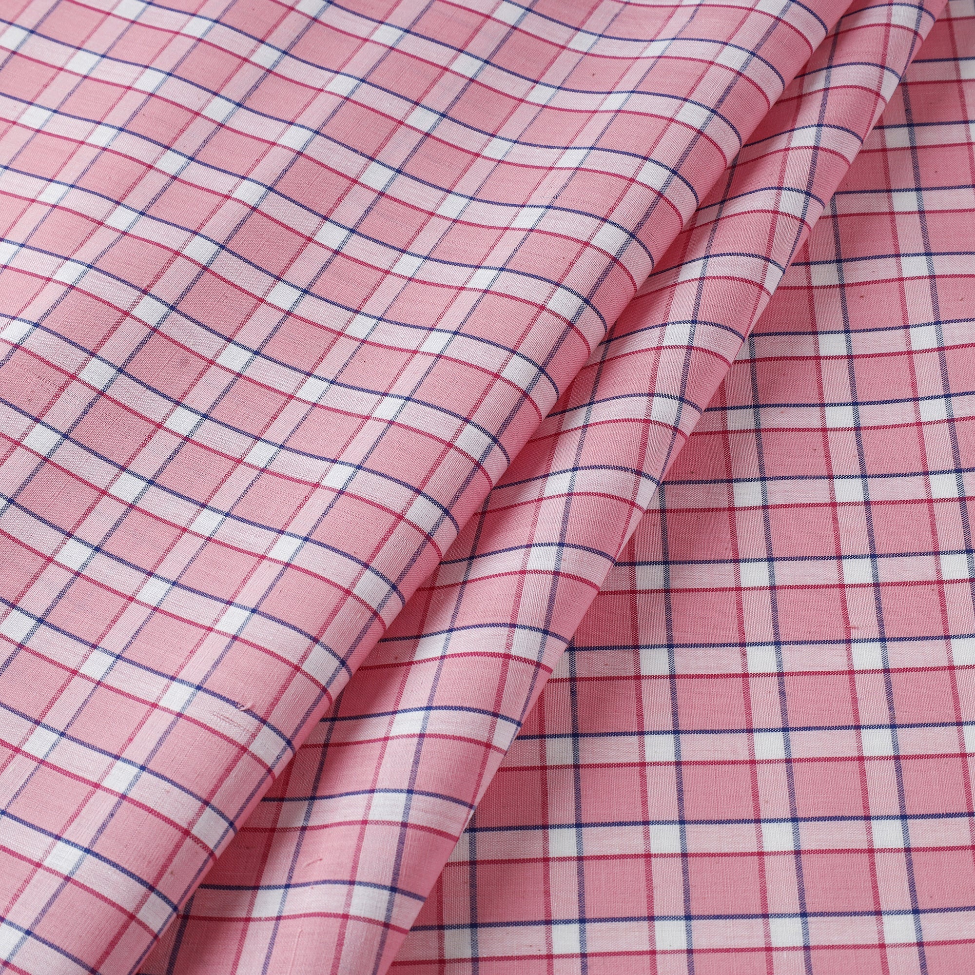 Indulge in the finest pink mangalagiri handloom checks cotton fabric from Andhra Pradesh, known for its exceptional quality. Crafted from high-quality cotton, this soft and breathable fabric is perfect for crafting exquisite sarees, stylish kurtas, and comfortable salwar suits. Carefully handpicked cotton fibers, processed with traditional techniques, bring out intricate designs and vibrant colors. This fabric, colored with azo-free dyes, elevates your wardrobe and also celebrates the rich heritage of Indian handloom, making each piece a timeless symbol of style and tradition.