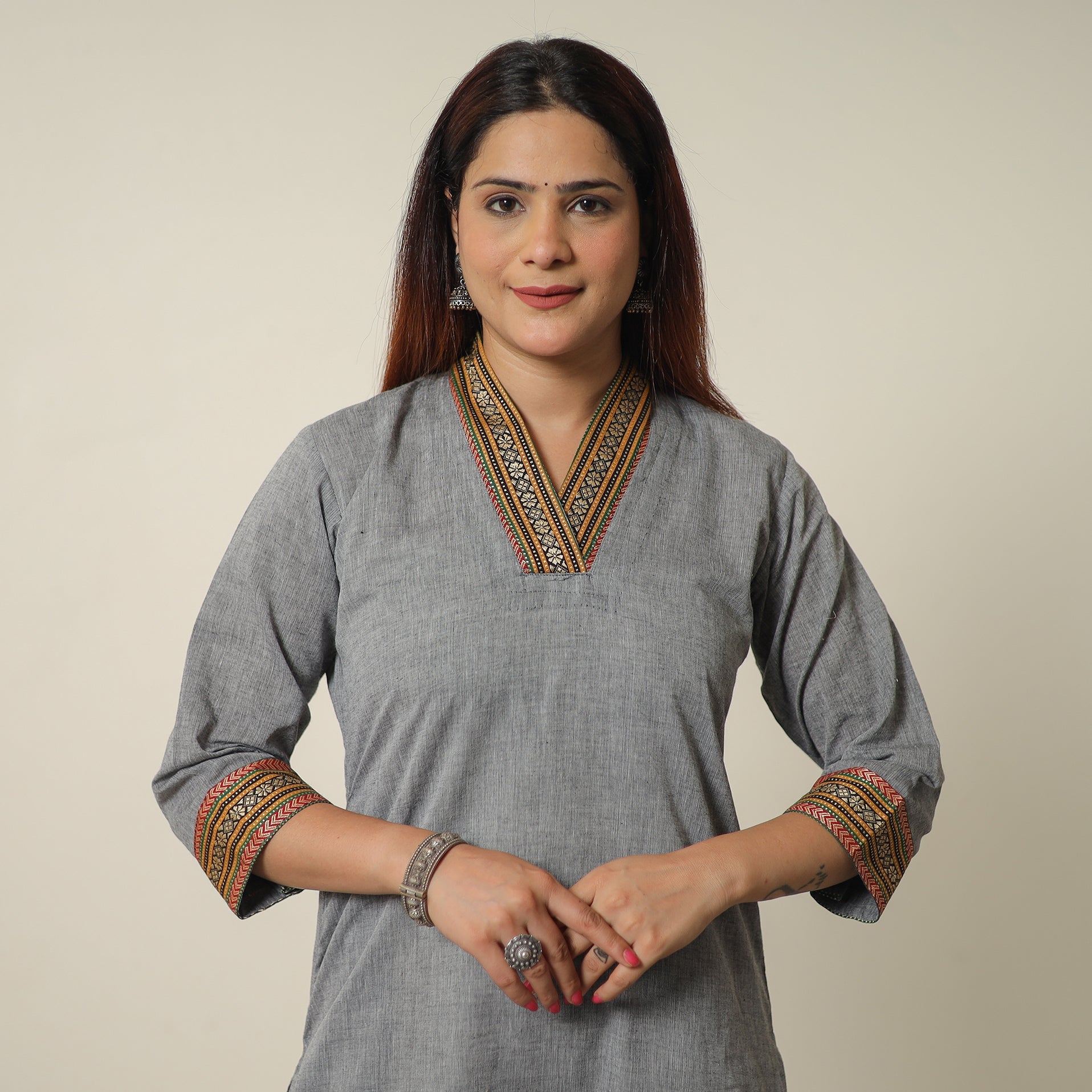 Look and feel beautiful in this uniquely designed Dharwad cotton straight long kurta. This exquisite kurta is crafted from fine-quality cotton fabric, ensuring a comfortable feel against your skin. It boasts exquisite dharwad border designs on the neck and sleeve, adding a touch of elegance to your ensemble. The kurta also features a convenient one-side pocket, perfect for carrying small essentials. This cotton kurta makes you comfortable all day long. This kurta is perfect for your daily outing and for a special occasion.