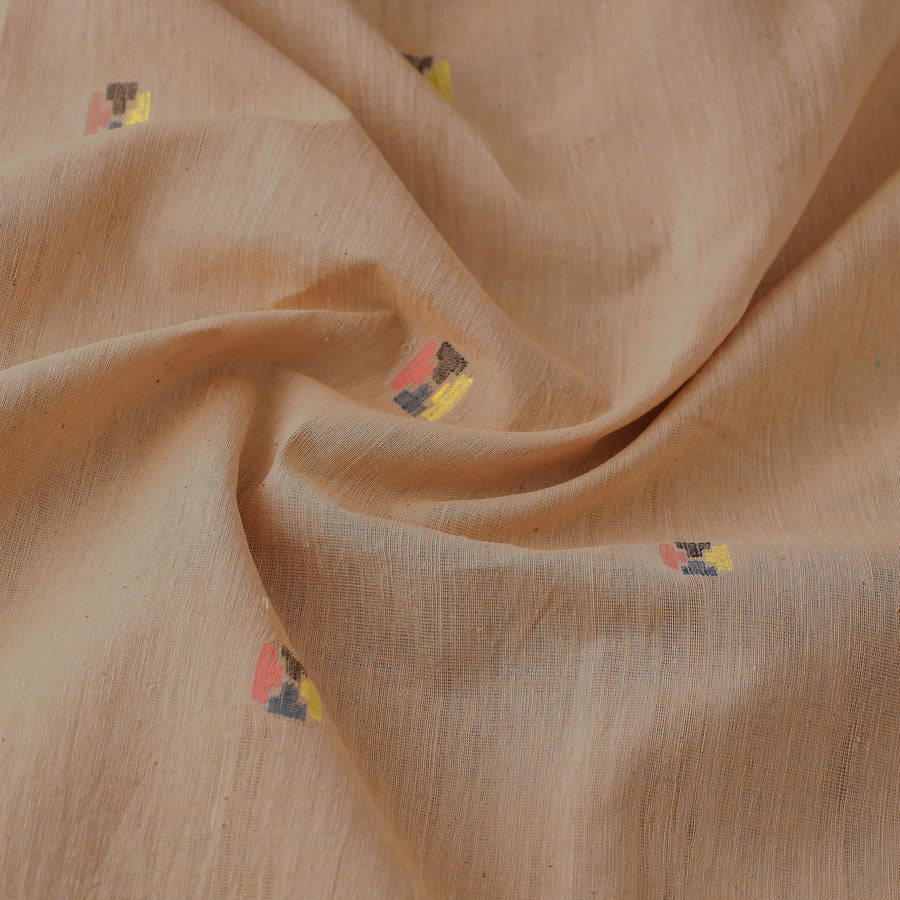 Fine quality srikakulam jamdani pure handloom cotton fabric from Andhra Pradesh. Azo free dyes have been used to make this fabric. The base fabric for Jamdani is unbleached cotton yarn and the design is woven using bleached cotton yarns so that a light-and-dark effect is created. The process is extremely time consuming as it involves a tedious form of hand looming. The making of Jamdani involves the supplementary weft technique along with the standard weft technique. With the latter, the base sheer material is made on which thicker threads on used to create designs.