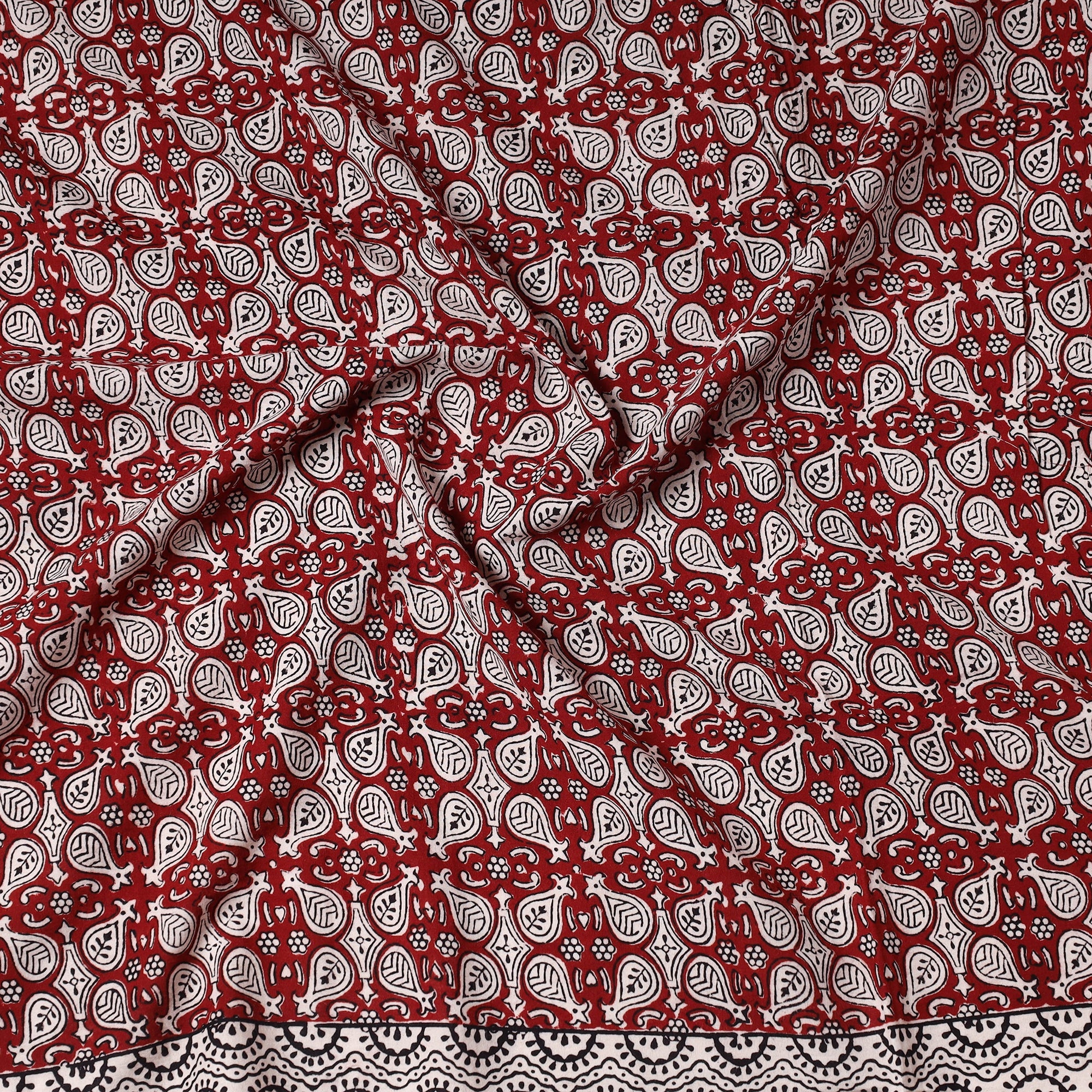 Fine quality red bagh block printed cotton precut fabric made using natural dyes through traditional processes by master craftsman bilal khatri practiced in bagh the dhar district of madhya pradesh. Perfect for crafting elegant blouses, bags, decorative items, etc., this exquisite textile symbolizes timeless sophistication, adding a touch of elegance to any wardrobe.