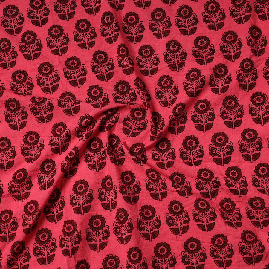 Red - Natural Dyed Cotton Hand Block Bagh Print Fabric 14