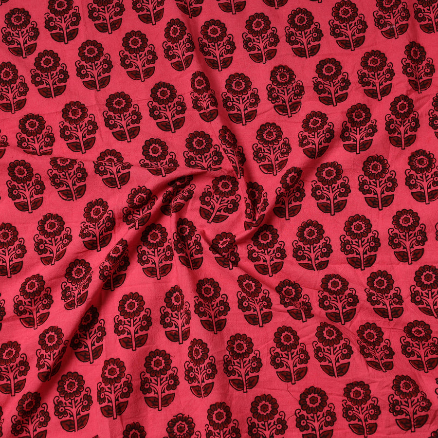 Fine quality pink bagh block printed cotton precut fabric made using natural dyes through traditional processes by master craftsman bilal khatri practiced in bagh the dhar district of madhya pradesh. Perfect for crafting elegant blouses, bags, decorative items, etc., this exquisite textile symbolizes timeless sophistication, adding a touch of elegance to any wardrobe.