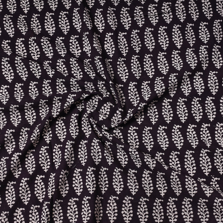 Fine quality black bagh block printed cotton precut fabric made using natural dyes through traditional processes by master craftsman bilal khatri practiced in bagh the dhar district of madhya pradesh. Perfect for crafting elegant blouses, bags, decorative items, etc., this exquisite textile symbolizes timeless sophistication, adding a touch of elegance to any wardrobe.