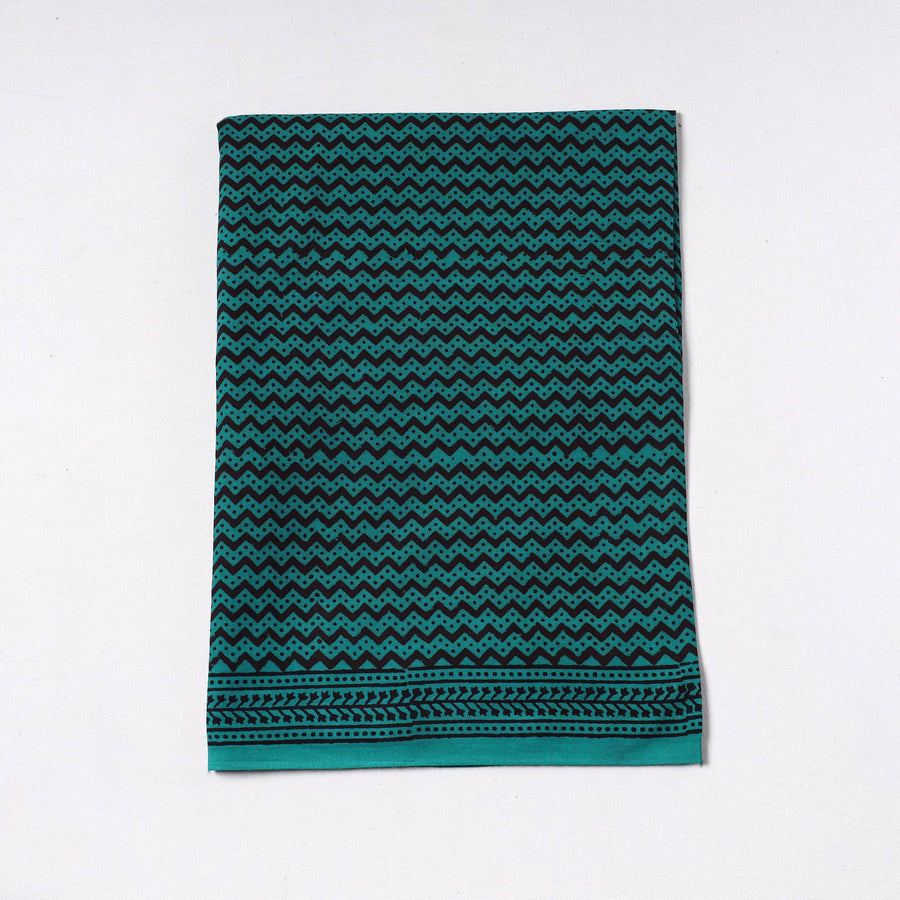 Fine quality green bagh block printed cotton precut fabric made using natural dyes through traditional processes by master craftsman bilal khatri practiced in bagh the dhar district of madhya pradesh. Perfect for crafting elegant blouses, bags, decorative items, etc., this exquisite textile symbolizes timeless sophistication, adding a touch of elegance to any wardrobe.