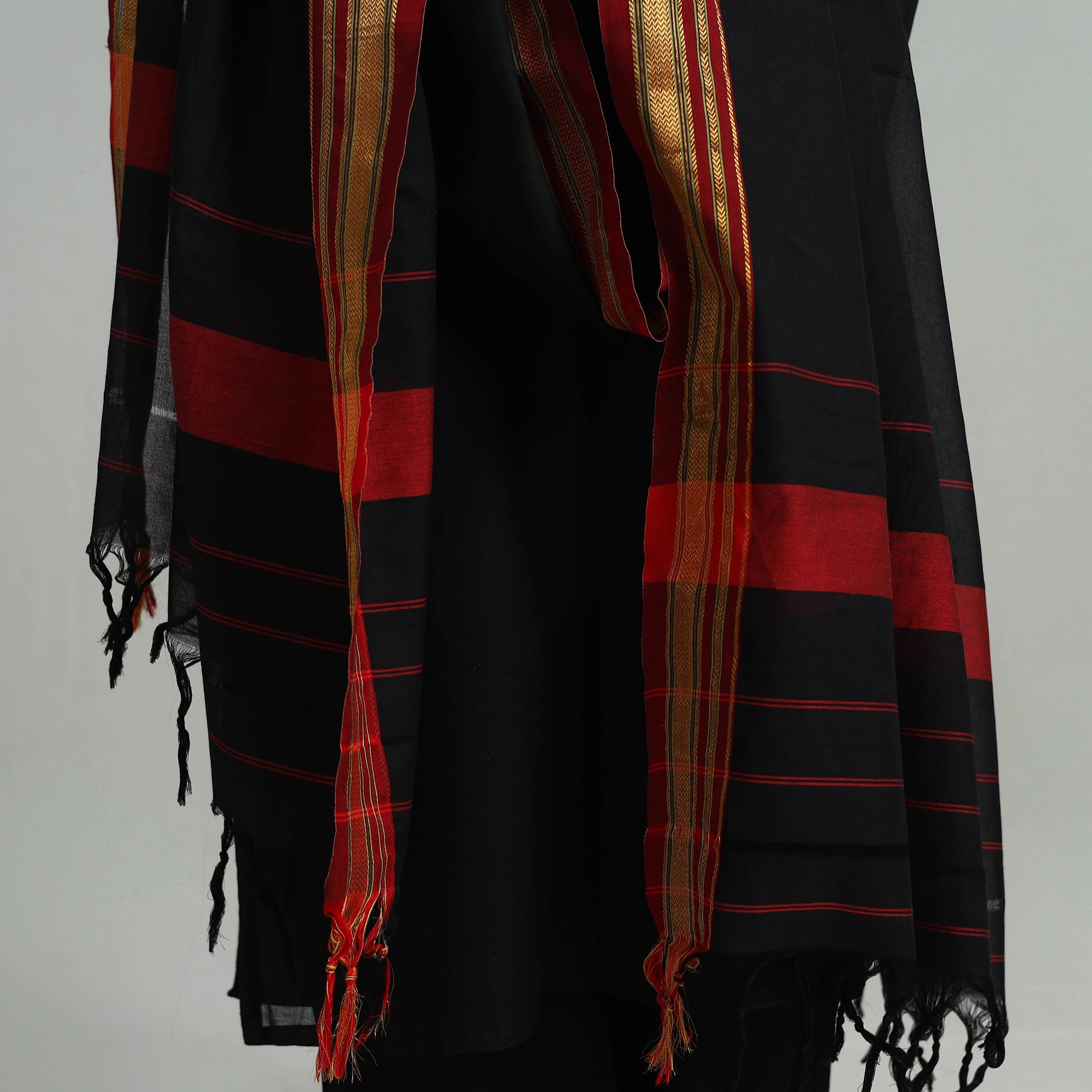 Black - 3pc Cotton Unstitched Dharwad Dress Material with Border 16