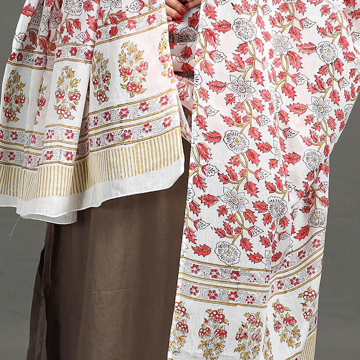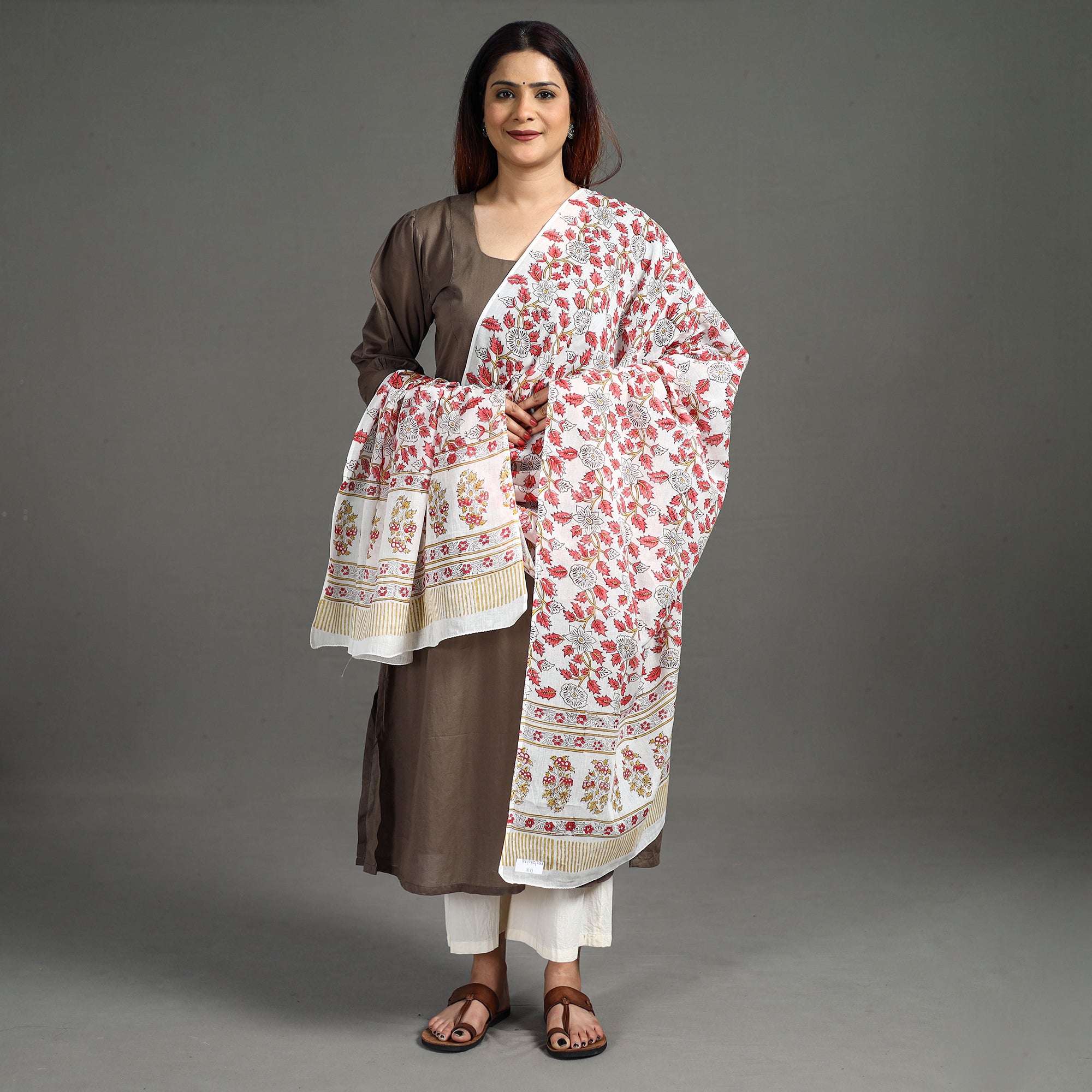 Fine quality sanganeri hand block printed mul cotton dupatta made using Bleed free VAT dyes. Sanganeri is a hand-block printing technique originating from Sanganer, a village in the southern part of Jaipur, Rajasthan.