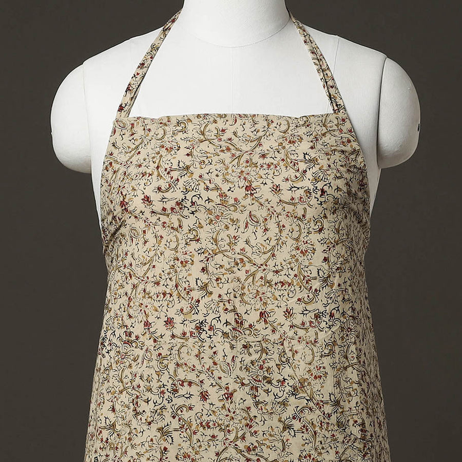 This beige kalamkari block-printed cotton apron with pocket is a versatile and stylish addition to your cooking and baking ensemble! Made from high-quality cotton material, this apron is perfect for protecting your clothing from splatters. The traditional kalamkari hand block print adds a touch of elegance and sophistication to your cooking attire, making it a great choice for both home cooks and professional chefs. With a convenient pocket at the front, this apron allows you to keep all your essential kitchen tools close at hand. Whether you need a spatula, spoon, or timer, you can easily store it in your pocket for easy access while you work. The adjustable neck strap and waist ties ensure a comfortable and secure fit for all body types, making this apron suitable for both men and women.