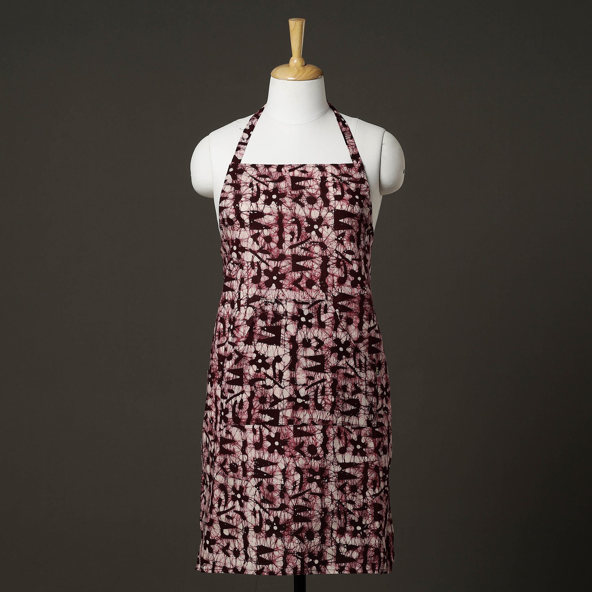 This maroon hand-batik-printed cotton apron with pocket is a versatile and stylish addition to your cooking and baking ensemble! Made from high-quality cotton material, this apron is perfect for protecting your clothing from splatters and spills while you work in the kitchen. The hand batik prints add a touch of elegance and sophistication to your cooking attire, making it a great choice for both home cooks and professional chefs. With a convenient pocket at the front, this apron allows you to keep all your essential kitchen tools close at hand. Whether you need a spatula, spoon, or timer, you can easily store it in your pocket for easy access while you work. The adjustable neck strap and waist ties ensure a comfortable and secure fit for all body types, making this apron suitable for both men and women.