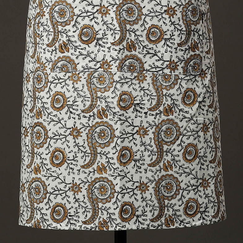 This white sanganeri block printed cotton apron with pocket - a versatile and stylish addition to your cooking and baking ensemble! Made from high-quality cotton material, this apron is perfect for protecting your clothing from splatters and spills while you work in the kitchen. The traditional Sanganeri hand block print adds a touch of elegance and sophistication to your cooking attire, making it a great choice for both home cooks and professional chefs. With a convenient pocket at the front, this apron allows you to keep all your essential kitchen tools close at hand. Whether you need a spatula, spoon or timer, you can easily store it in the pocket for easy access while you work. The adjustable neck strap and waist ties ensure a comfortable and secure fit for all body types, making this apron suitable for both men and women.