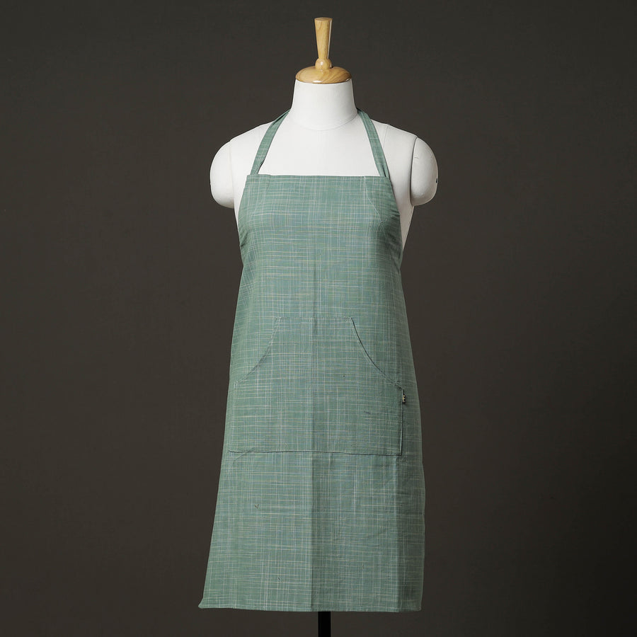 This green plain handloom jhiri cotton apron with pocket is a versatile and stylish addition to your cooking and baking ensemble! Made from high-quality cotton material, this apron is perfect for protecting your clothing from splatters and spills while you work in the kitchen. This adds a touch of elegance and sophistication to your cooking attire, making it a great choice for both home cooks and professional chefs. With a convenient pocket at the front, this apron allows you to keep all your essential kitchen tools close at hand. Whether you need a spatula, spoon, or timer, you can easily store it in your pocket for easy access while you work. The adjustable neck strap and waist ties ensure a comfortable and secure fit for all body types, making this apron suitable for both men and women.