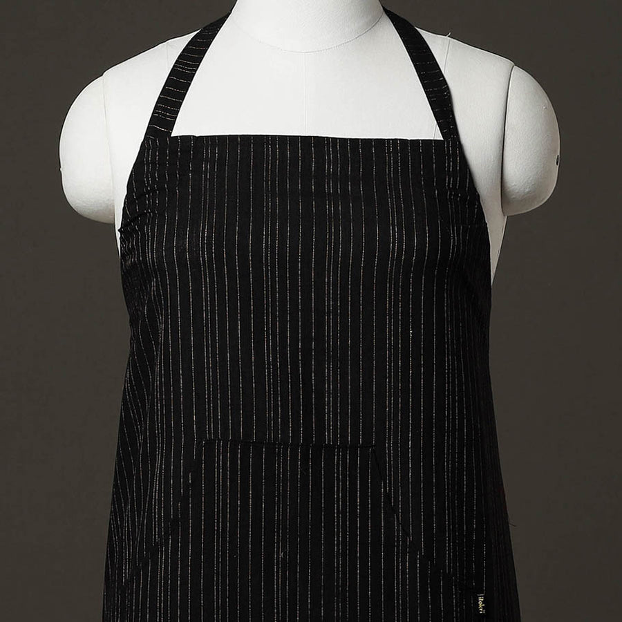 This black plain handloom jhiri cotton apron with pocket is a versatile and stylish addition to your cooking and baking ensemble! Made from high-quality cotton material, this apron is perfect for protecting your clothing from splatters and spills while you work in the kitchen. This adds a touch of elegance and sophistication to your cooking attire, making it a great choice for both home cooks and professional chefs. With a convenient pocket at the front, this apron allows you to keep all your essential kitchen tools close at hand. Whether you need a spatula, spoon, or timer, you can easily store it in your pocket for easy access while you work. The adjustable neck strap and waist ties ensure a comfortable and secure fit for all body types, making this apron suitable for both men and women.