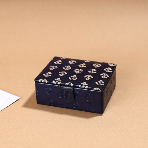 Fine-quality pure leather embossed card holder handcrafted by the master artisans of West Bengal. These products are made from the embossed technique on cruelty-free leather. Embossed leather products are made using vegetable tanned leather. Every piece is embossed using a metal die, after which it is individually painted by hand using spirit colors. Each product is then constructed by hand. With time, it becomes softer and deeper in color, as is the natural characteristic of leather.