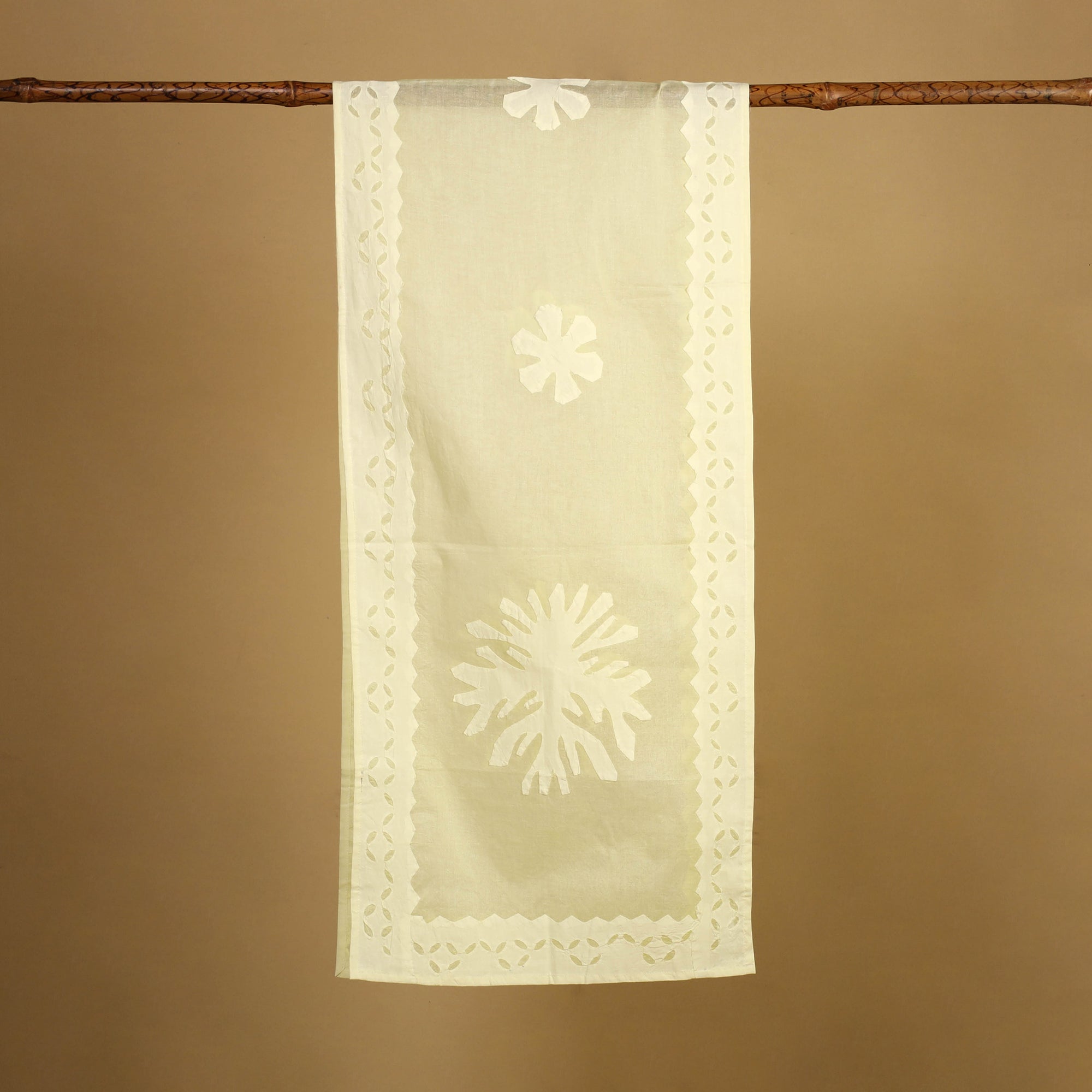 Elevate your attire with the charm of our yellow hand-stitched traditional applique-cut work cotton stole. Crafted by skilled artisans from Barmer, Rajasthan, unique-style appliqué work does magic in light and shade with beautiful stories and patterns. Perfect for special occasions, this stole adds a touch of timeless elegance to any ensemble, enhancing your style with its meticulous craftsmanship.
