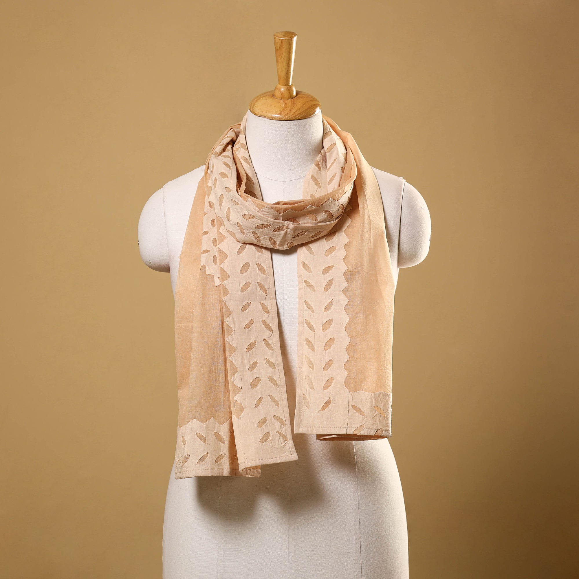 Elevate your attire with the charm of our hand-stitched traditional brown applique-cut work cotton stole. Crafted by skilled artisans from Barmer, Rajasthan, unique-style appliqué work does magic in light and shade with beautiful stories and patterns. Perfect for special occasions, this stole adds a touch of timeless elegance to any ensemble, enhancing your style with its meticulous craftsmanship.