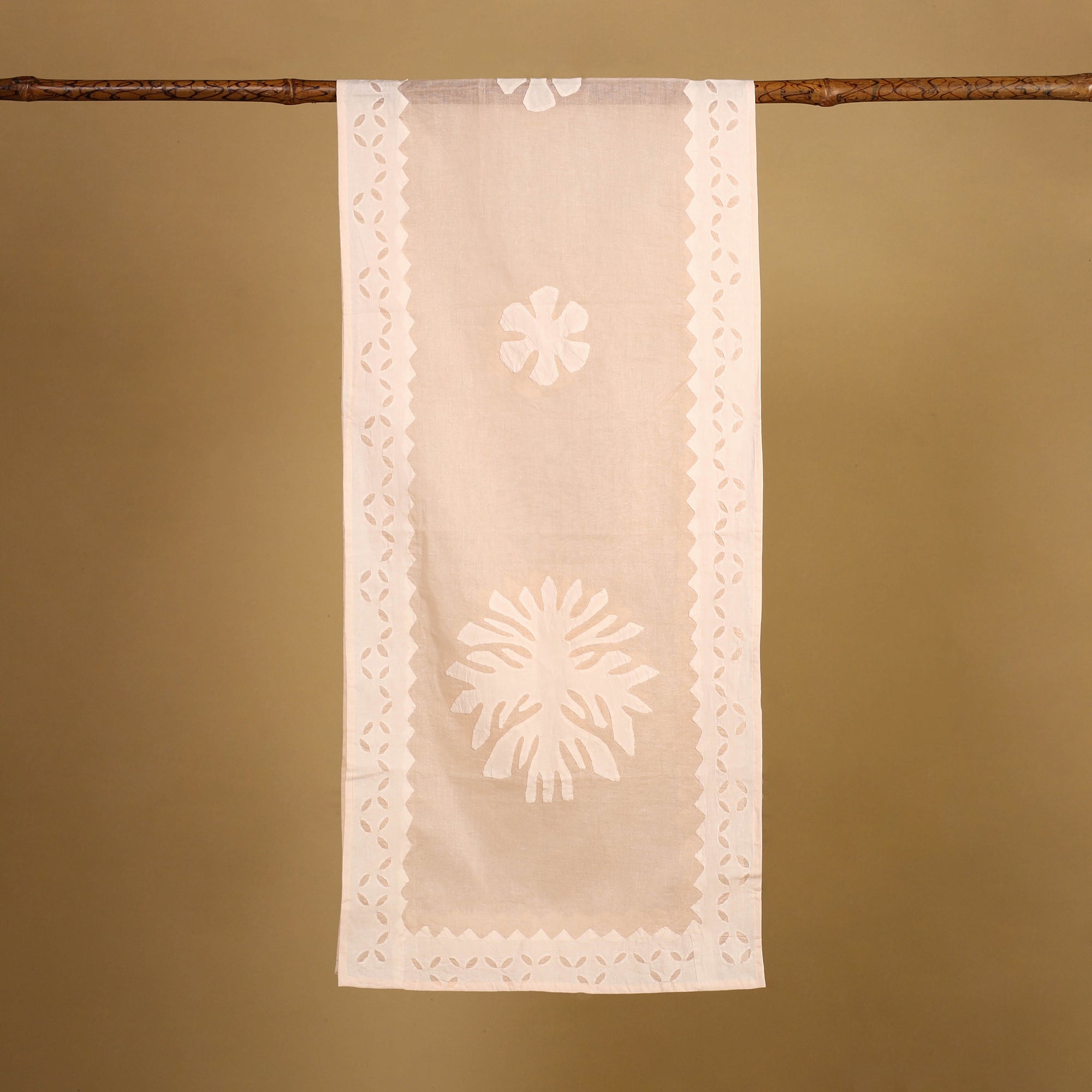 Elevate your attire with the charm of our hand-stitched traditional peach applique-cut work cotton stole. Crafted by skilled artisans from Barmer, Rajasthan, unique-style appliqué work does magic in light and shade with beautiful stories and patterns. Perfect for special occasions, this stole adds a touch of timeless elegance to any ensemble, enhancing your style with its meticulous craftsmanship.