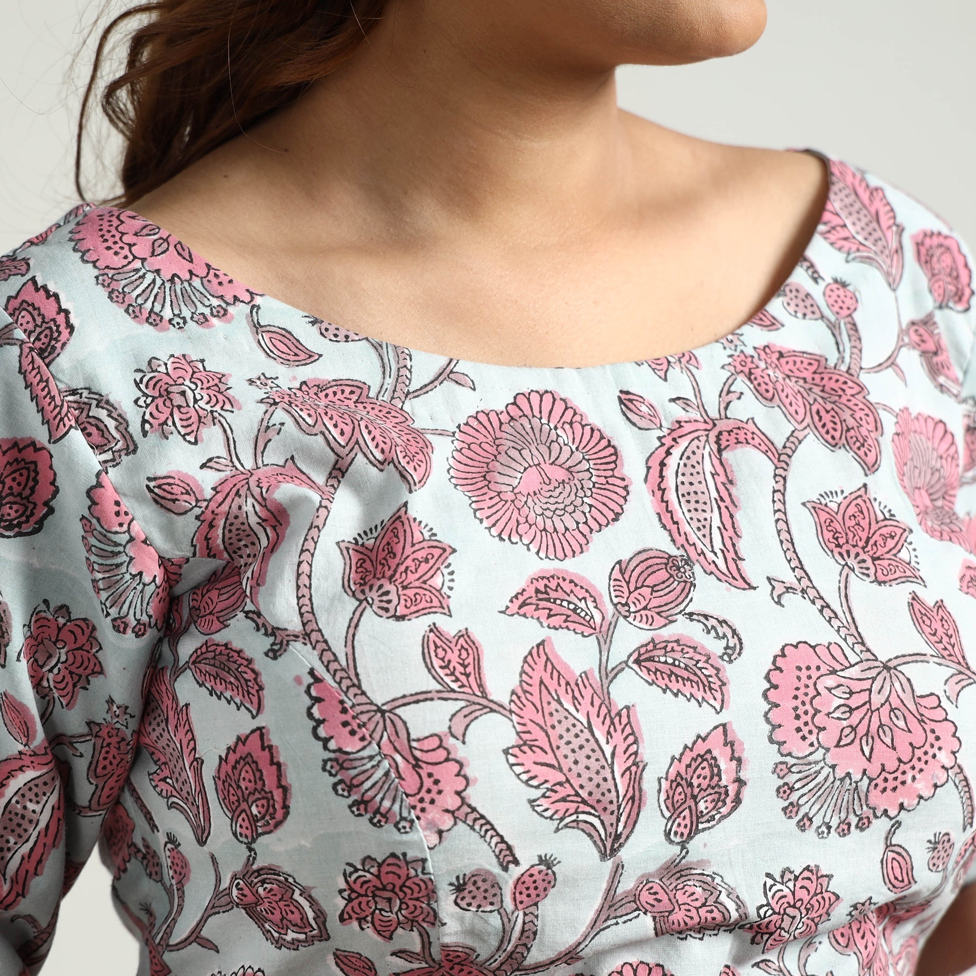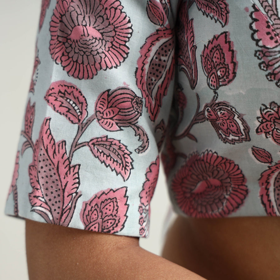 | Material | This sanganeri block-printed cotton blouse is seamlessly stitched with padded comfort for a relaxed fit. Crafted from cotton fabric known for its breathability and comfort, it features half sleeves that provide balanced coverage, making it perfect for any occasion. The hook lock adds convenience and allows for easy wear and removal. With its intricate block-printed floral motifs, this blouse adds a touch of cultural charm to your outfit. |