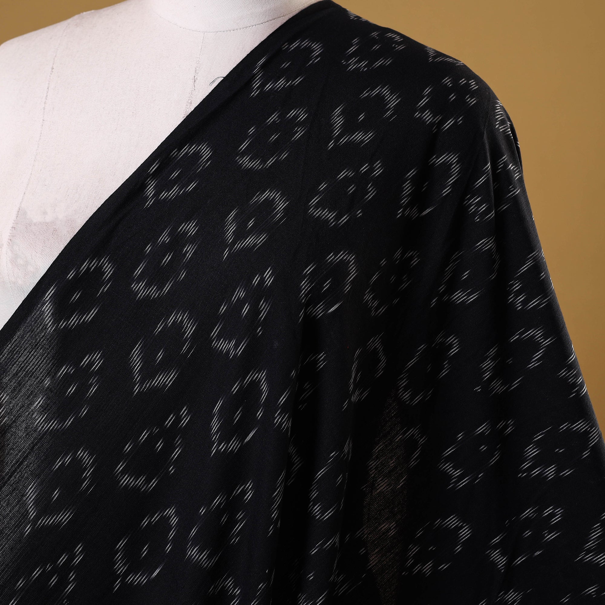 Fine quality weave black cotton pochampally ikat fabric from Koyyalagudem Village in Andhra Pradesh. This fabric features the distinctive Ikat dyeing technique, offering vibrant patterns and rich textures. Perfect for both traditional and modern projects, it’s a testament to India’s artisanal heritage.