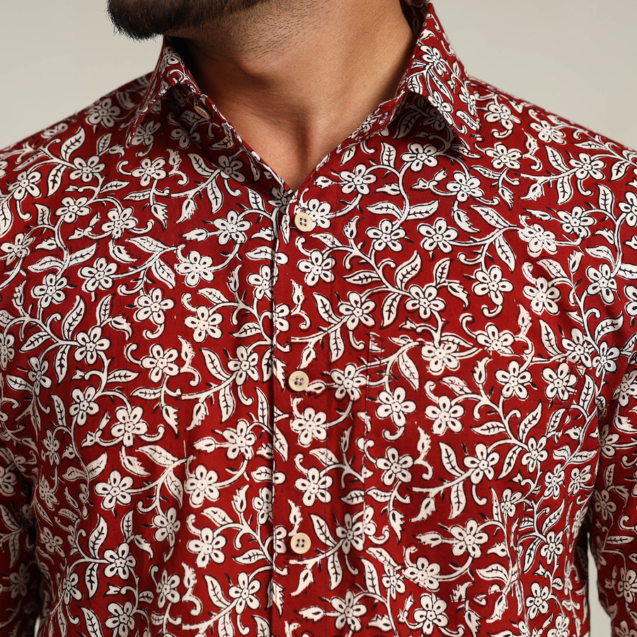Stay comfortable and stylish with our bagh hand-block-printed cotton men's full-sleeve shirt. It's crafted from soft and breathable cotton fabric, which ensures all-day comfort. This shirt features a regular collar and half sleeves, ideal for a casual yet sophisticated look. The wooden buttons add a touch of natural charm, while the patch pocket on the front offers convenience and practicality. This shirt is perfect for your daily outing and for a special occasion.