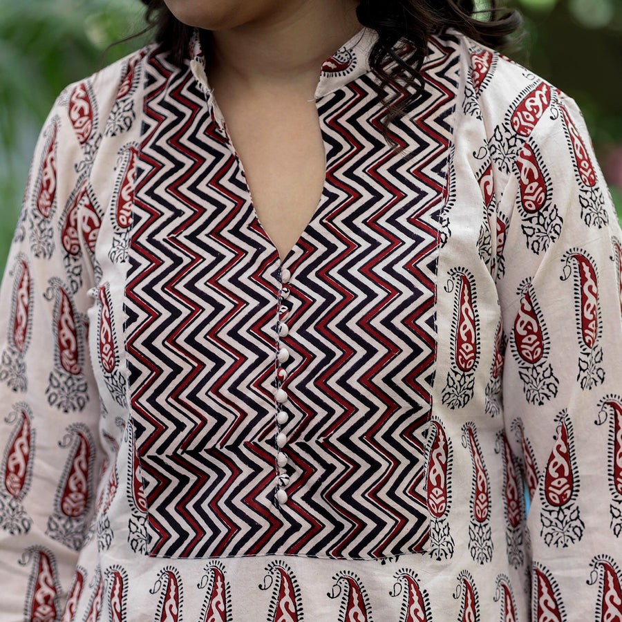 This uniquely designed block print cotton straight bagh kurta is a perfect blend of style and comfort. This kurta is crafted from natural-dyed cotton fabric, ensuring a comfortable feel against your skin. The kurta also features a convenient one-side pocket, perfect for carrying small essentials. This cotton kurta makes you comfortable all day long. This kurta is perfect for your daily outing and for a special occasion.