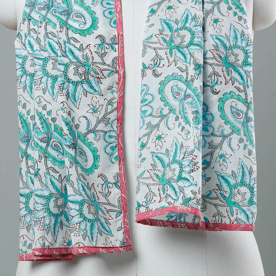 Indulge in the timeless elegance of the green sanganeri block-printed cotton stole, a versatile accessory that seamlessly combines tradition and style. Meticulously crafted using the centuries-old sanganeri printing technique, this stole boasts intricate hand-block patterns, reflecting the rich cultural heritage of Rajasthan. Perfect for everyday wear, it effortlessly enhances your look with its classy appeal. Make a lasting impact with this unique and versatile accessory.