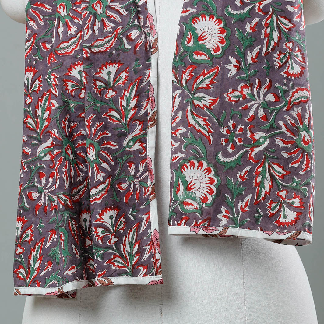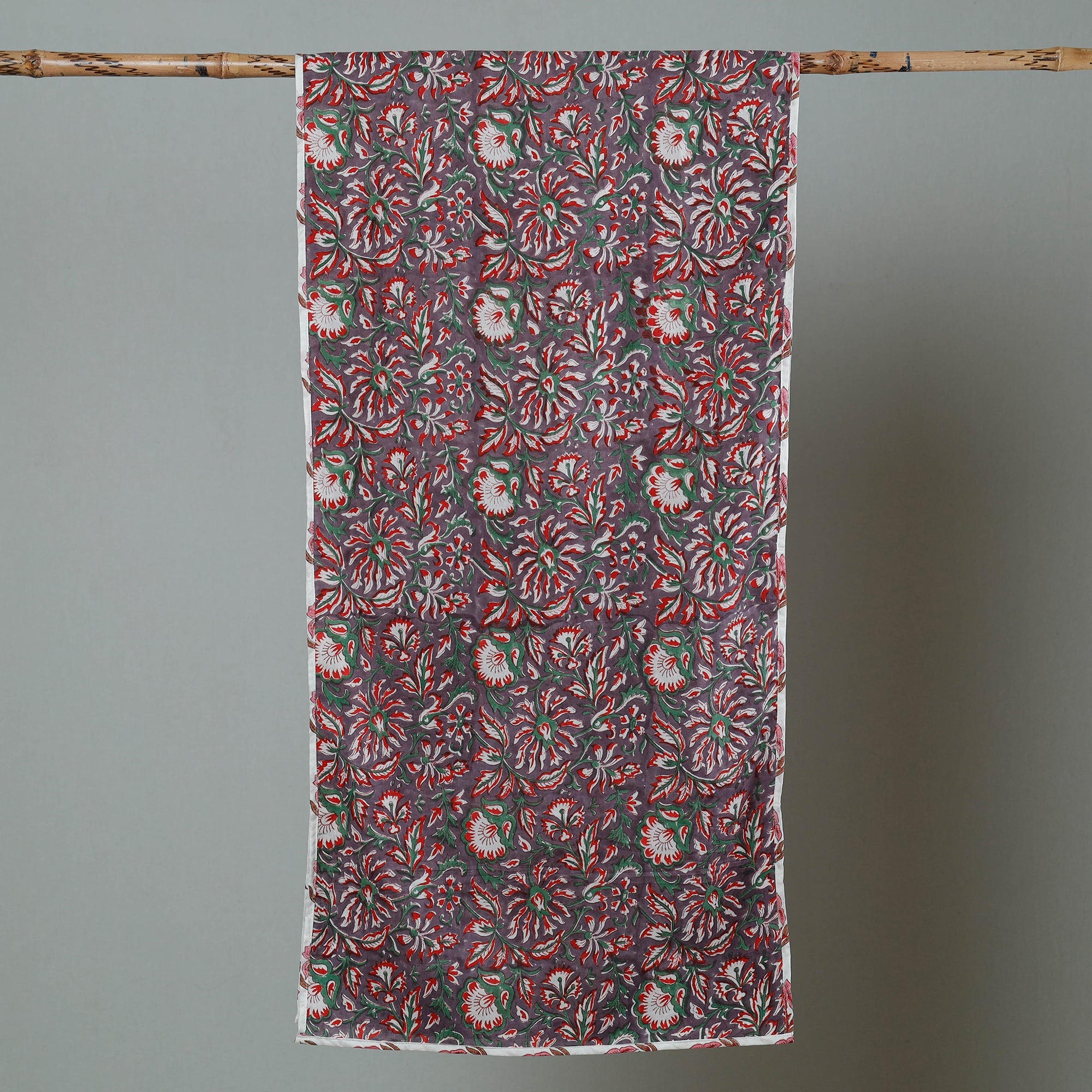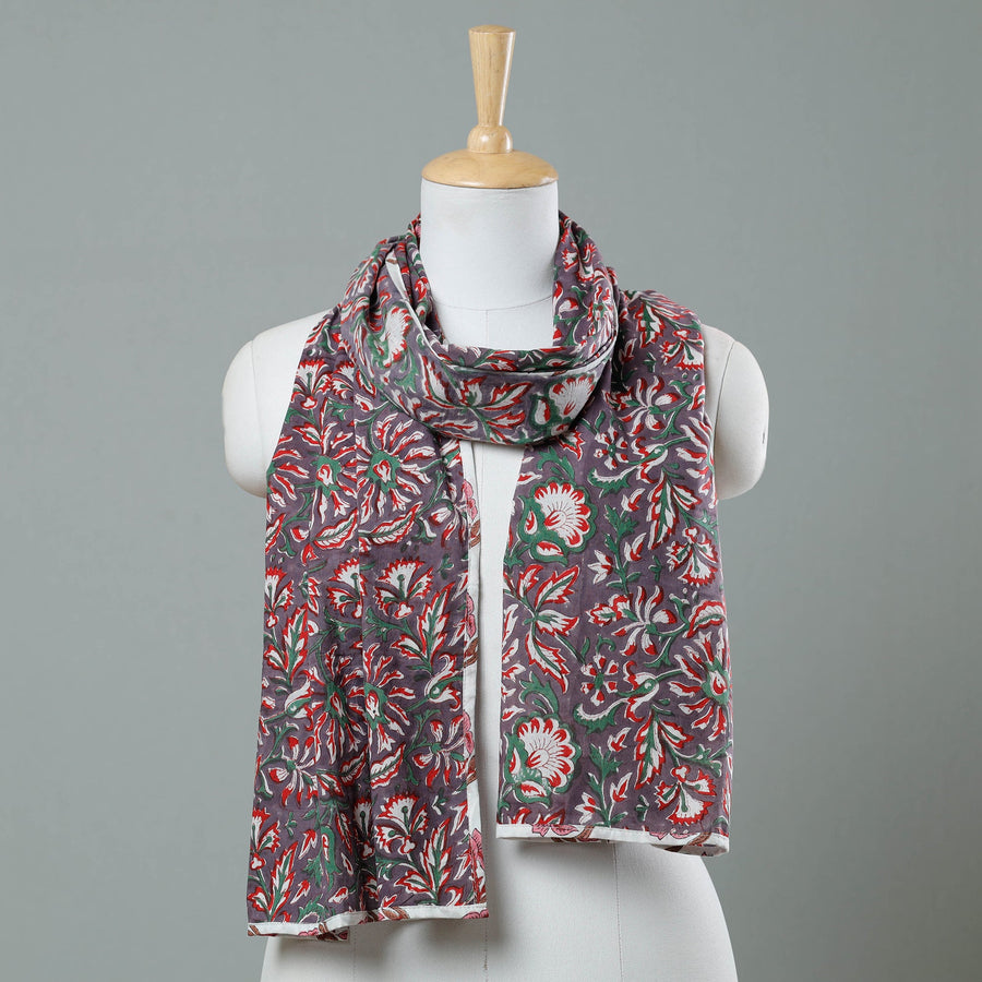 Grey - Sanganeri Block Printed Cotton Stole 02