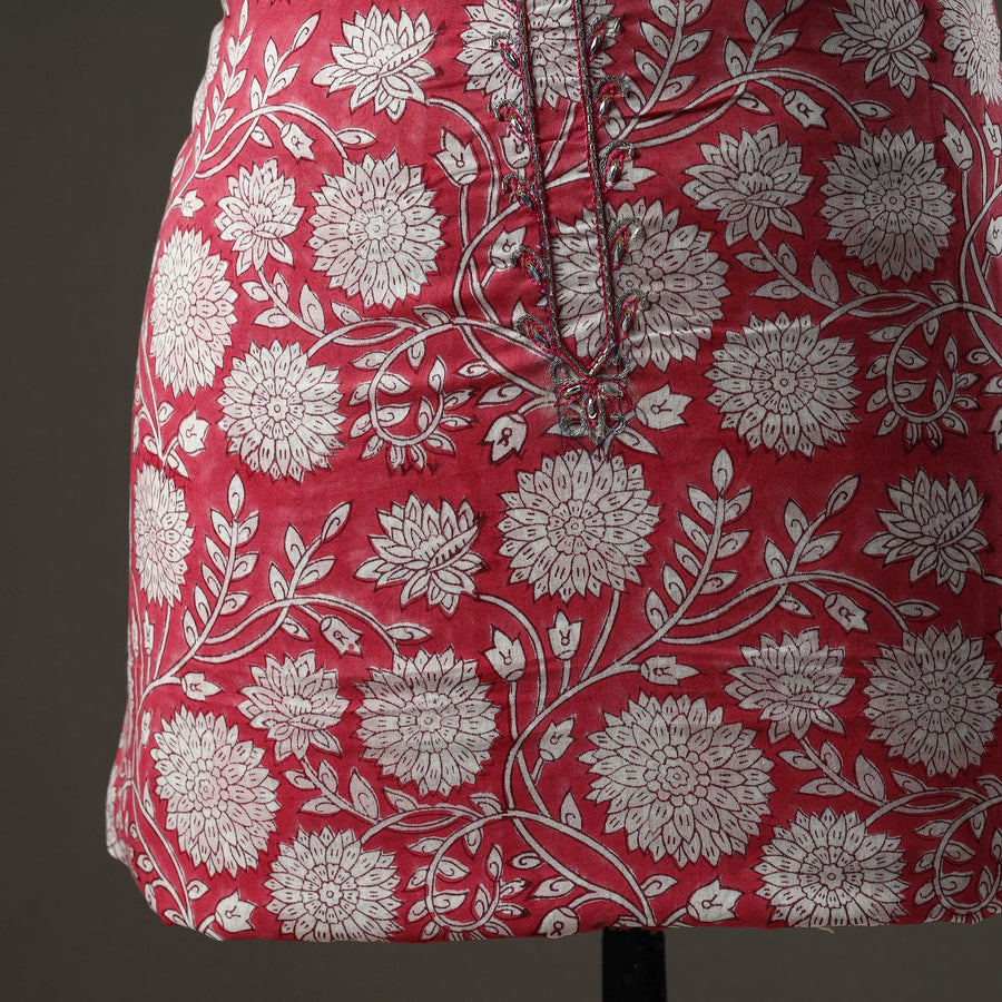 Experience the timeless allure of sanganeri block print cotton kurta material, meticulously embellished with intricate embroidery and delicate beads. Sanganeri is a hand-block printing technique that originated in Sanganer, a village in the southern part of Jaipur, Rajasthan. Perfect for creating elegant kurta sets that effortlessly blend tradition and style, ensuring a graceful presence on any occasion.